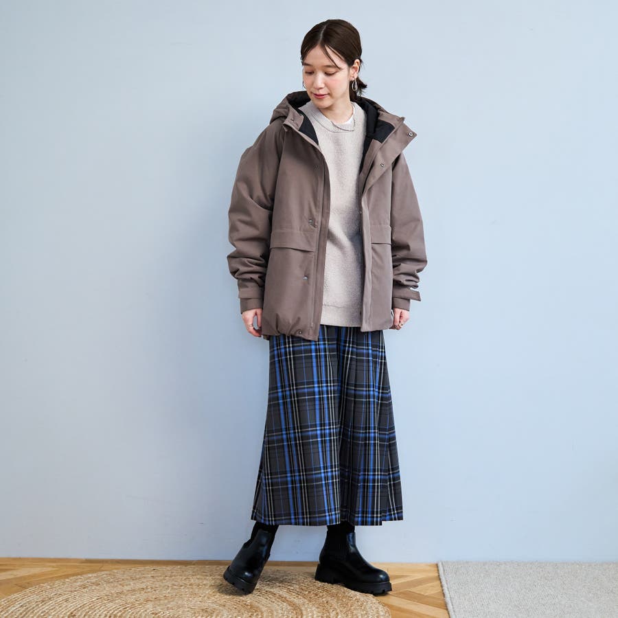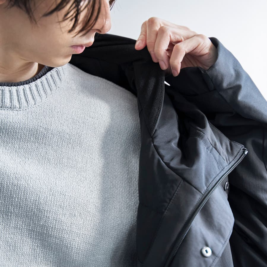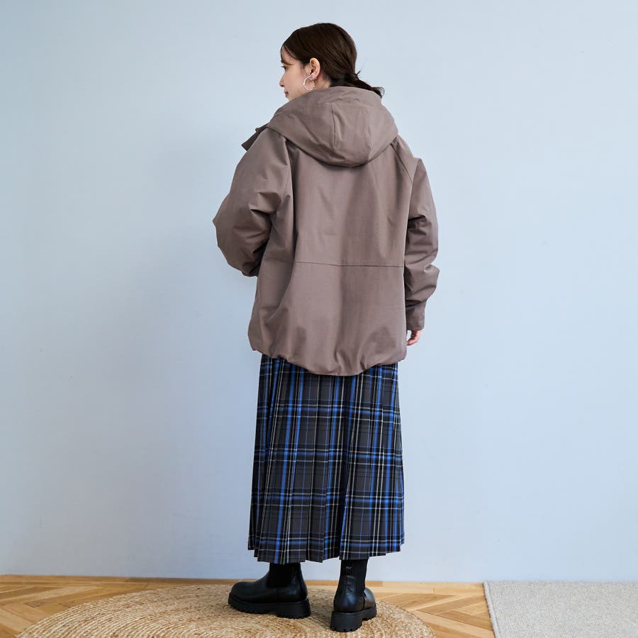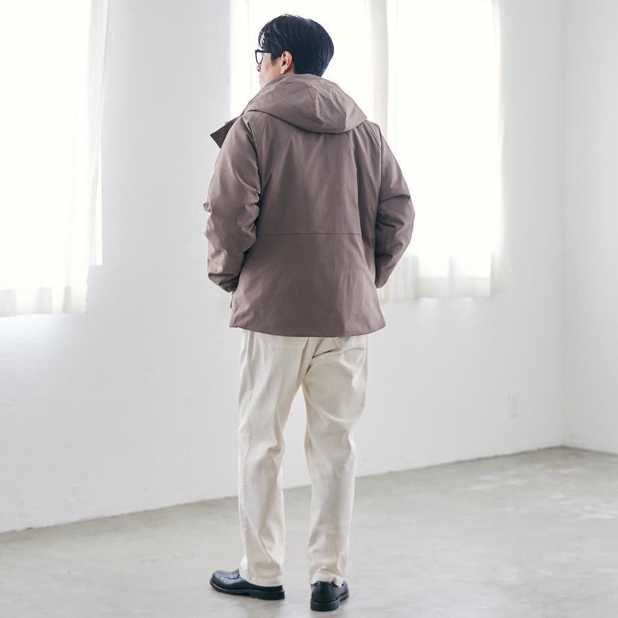 スタンドフード型のデザインに加え、内側には首まわりに沿う起毛スレキの衿型を採用し、冷えやすい首元をしっかりとカバーするフードブルゾン。