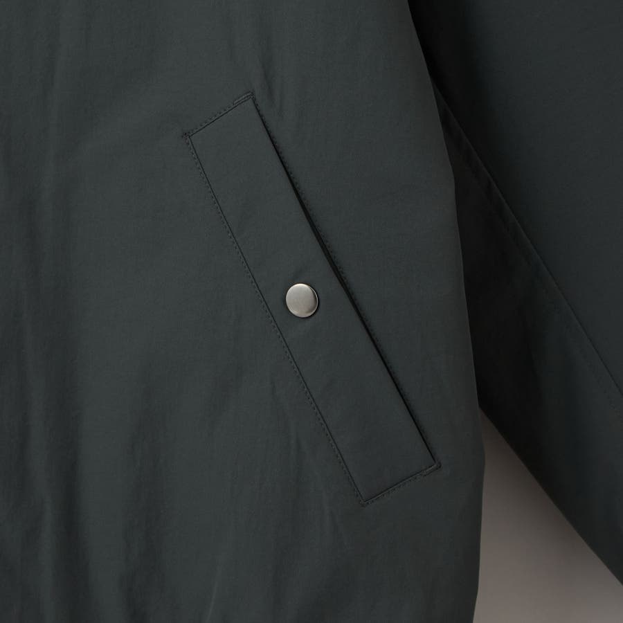 表地にはマットな質感の合繊ツイルを使用し、はっ水機能を備えているため、急な天候変化にも対応。