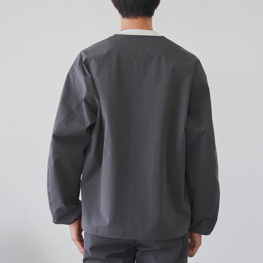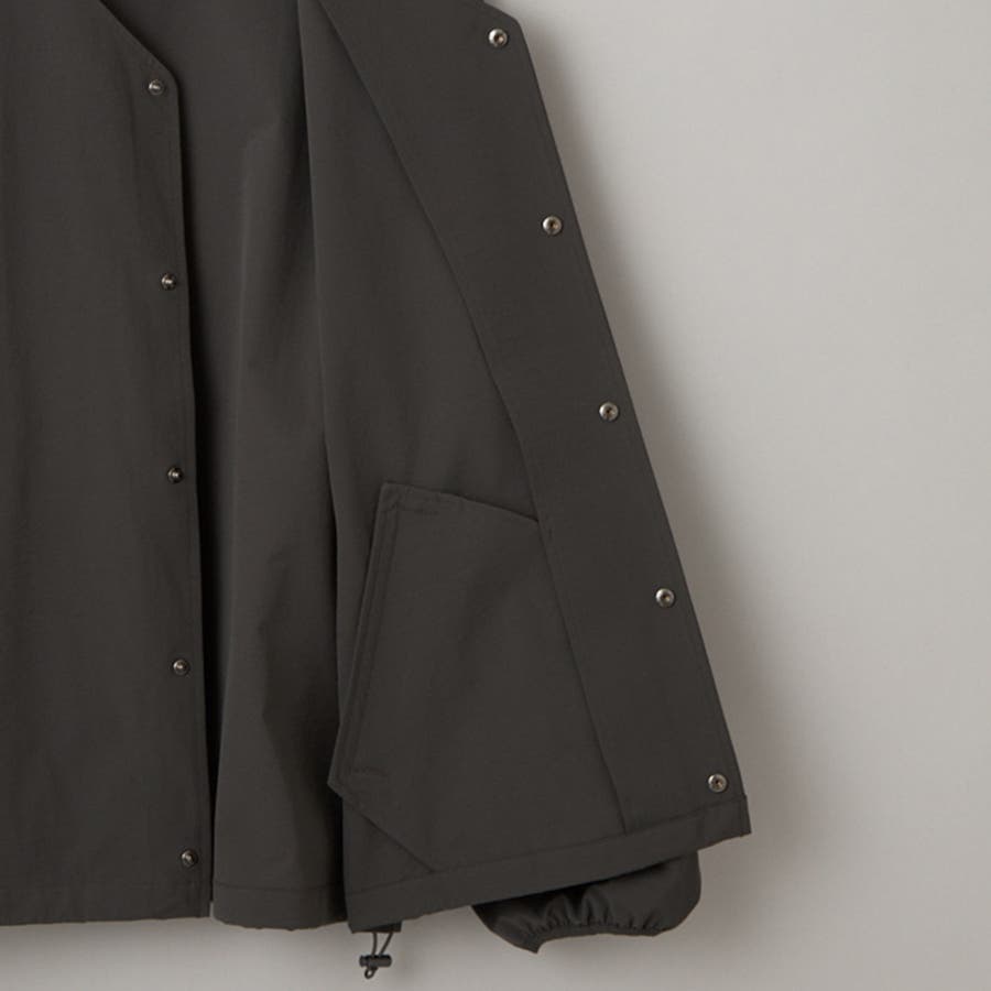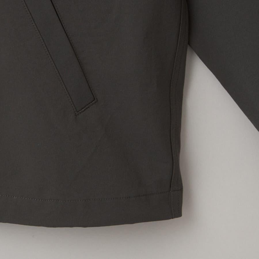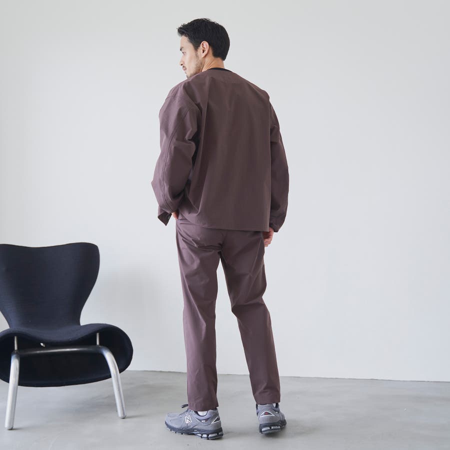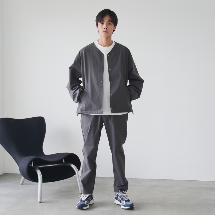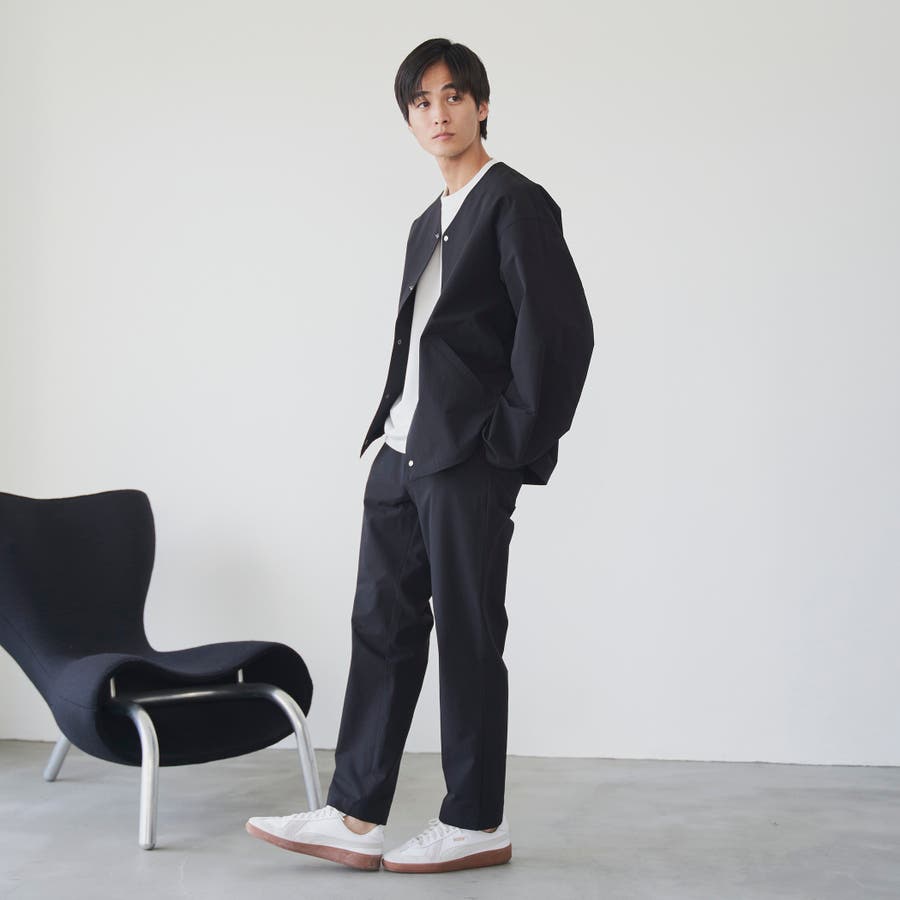 縦横に伸びる2wayストレッチ、ウォッシャブル、撥水、防シワといったマルチ機能付きのシンプルなノーカラージャケット。