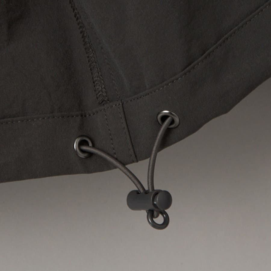 袖口がゴム仕様となっており、また裾の両脇のストッパーを調節することでバルーンシルエットにも変更可能です。