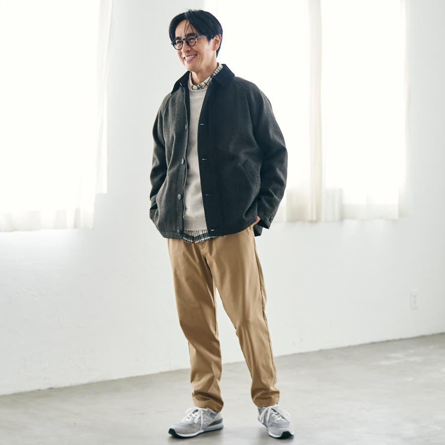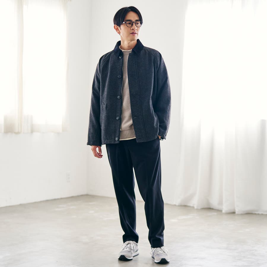 素材には温かみのあるウールブレンドのツイル生地を使用し、衿のコーデュロイも柔らかな風合いのものを選定しました。