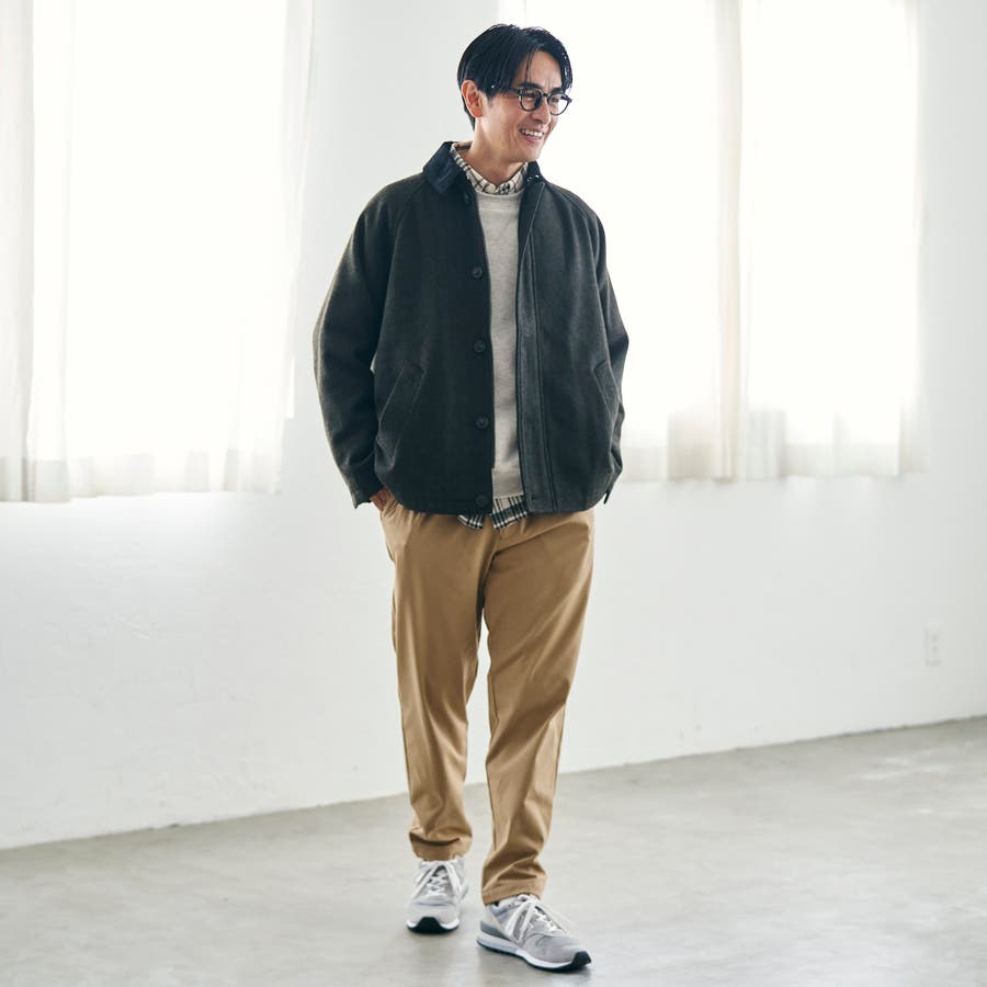 短丈のため、スリムパンツからワイドパンツまで幅広く合わせやすく、きれいめにもカジュアルにも対応できる汎用性の高い一枚。