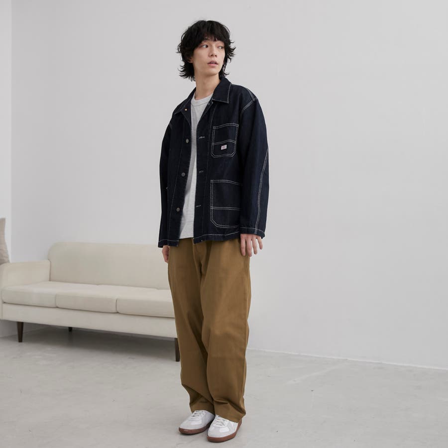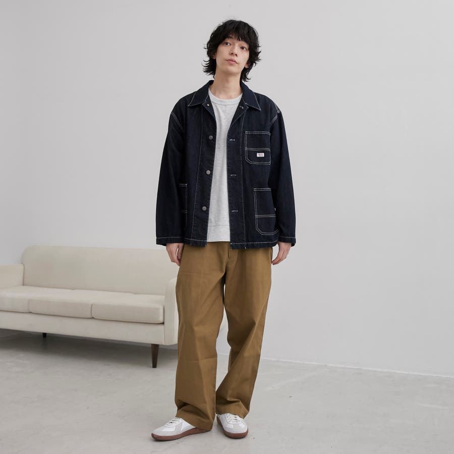 主張しすぎないシンプルなカバーオールなので、シャツ合わせやチノパンツでトラッド風なワークスタイルも◎