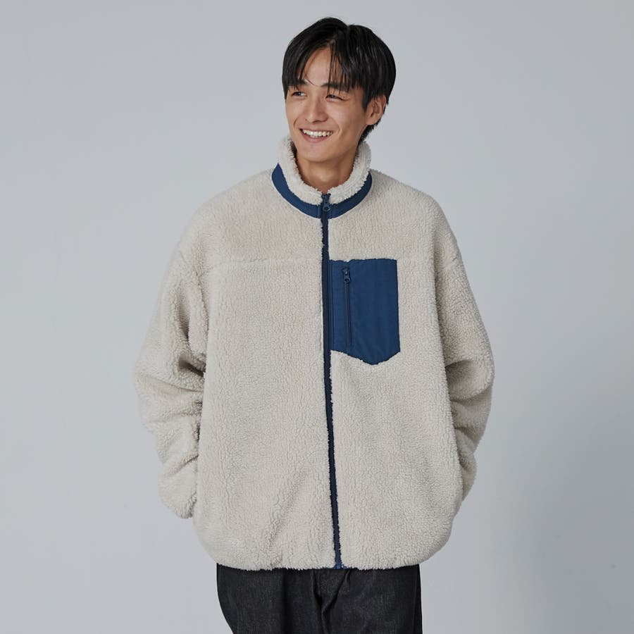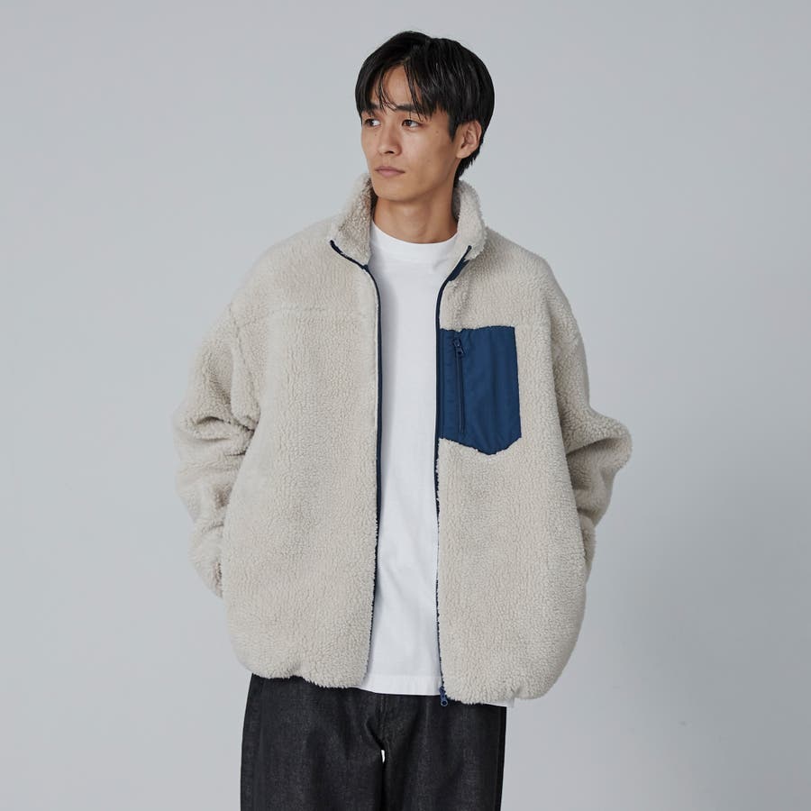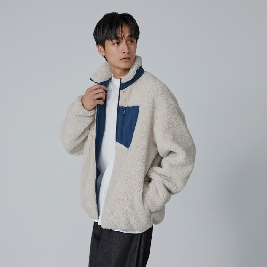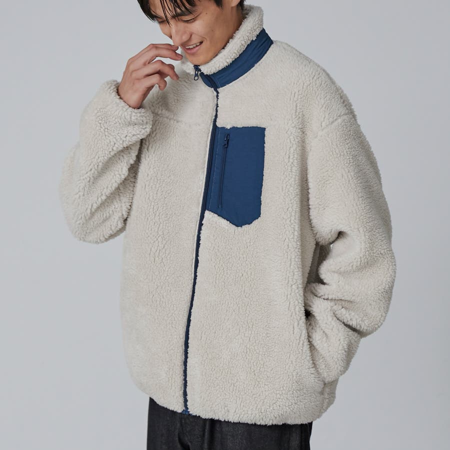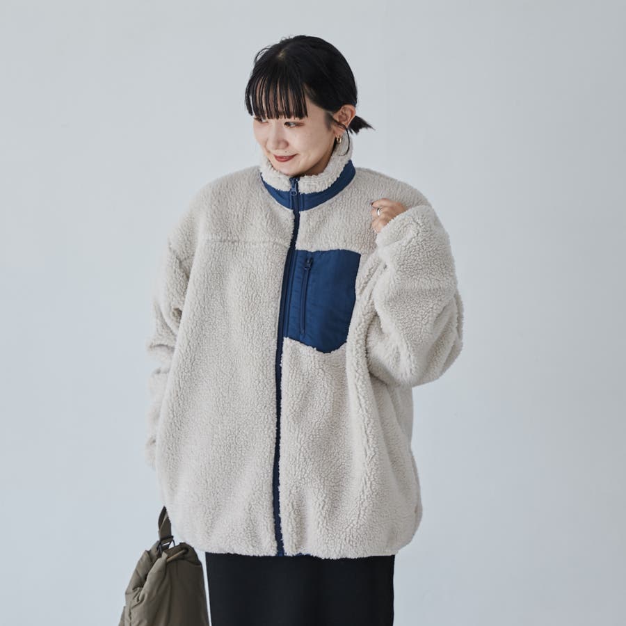 ふわモコのボア×フリースでデザインしたブルゾン。