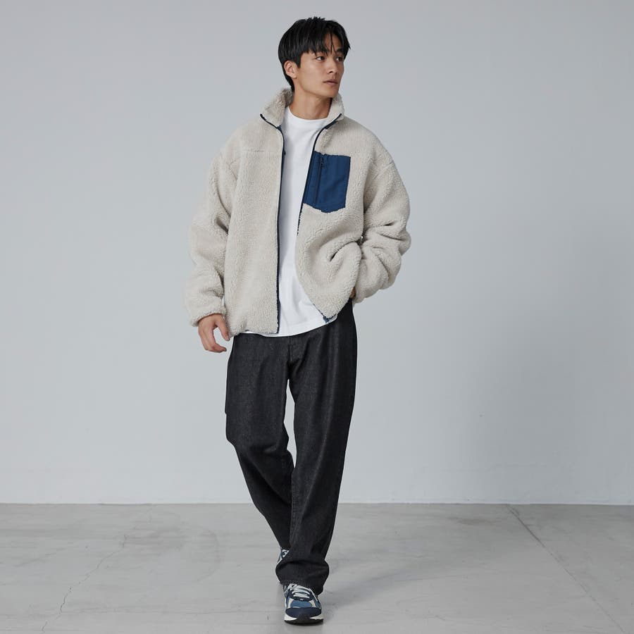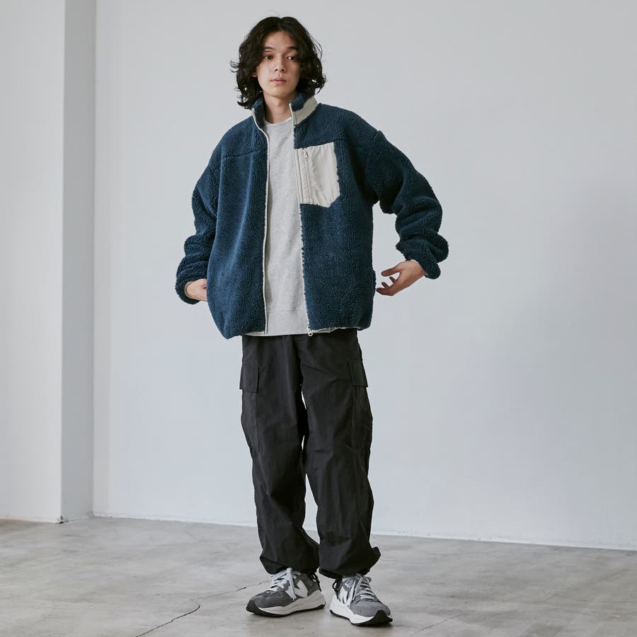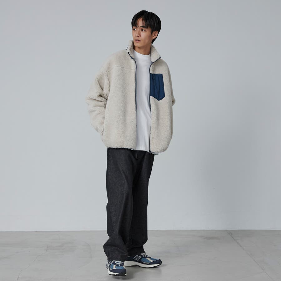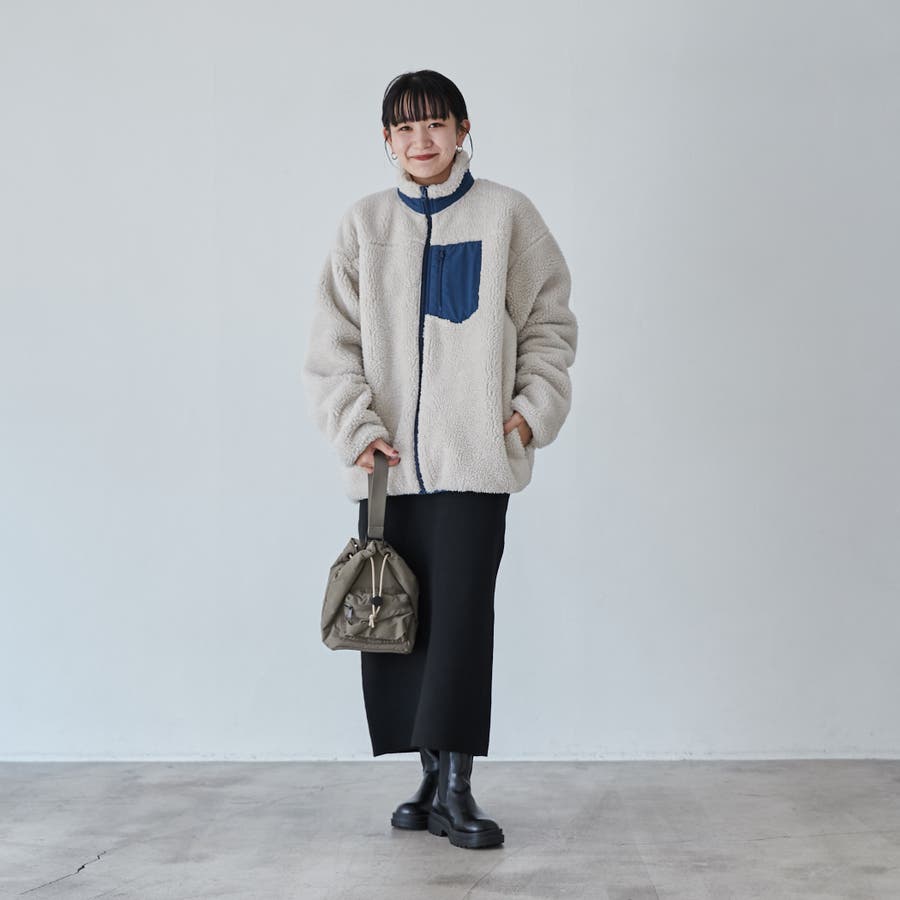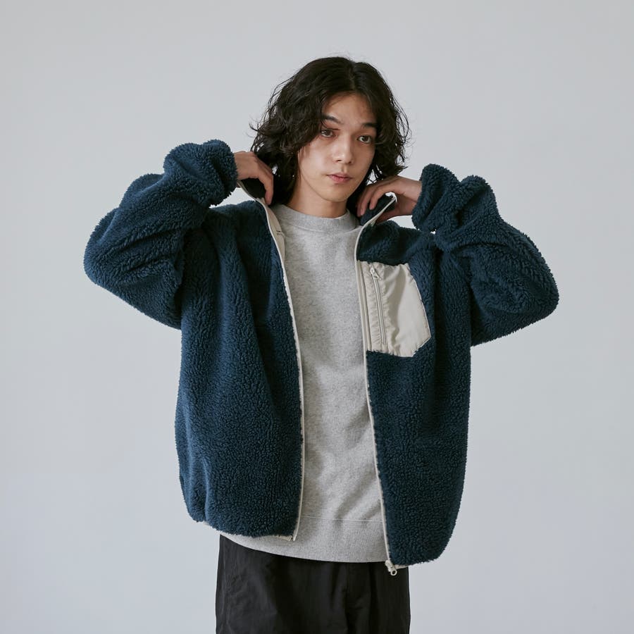 ふわモコのボア×フリースでデザインしたブルゾン。