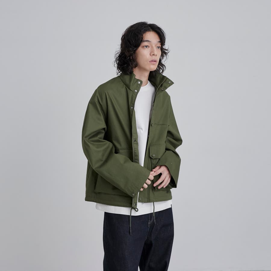 大人らしいスタンドカラー仕様の機能性付きミリタリージャケット。