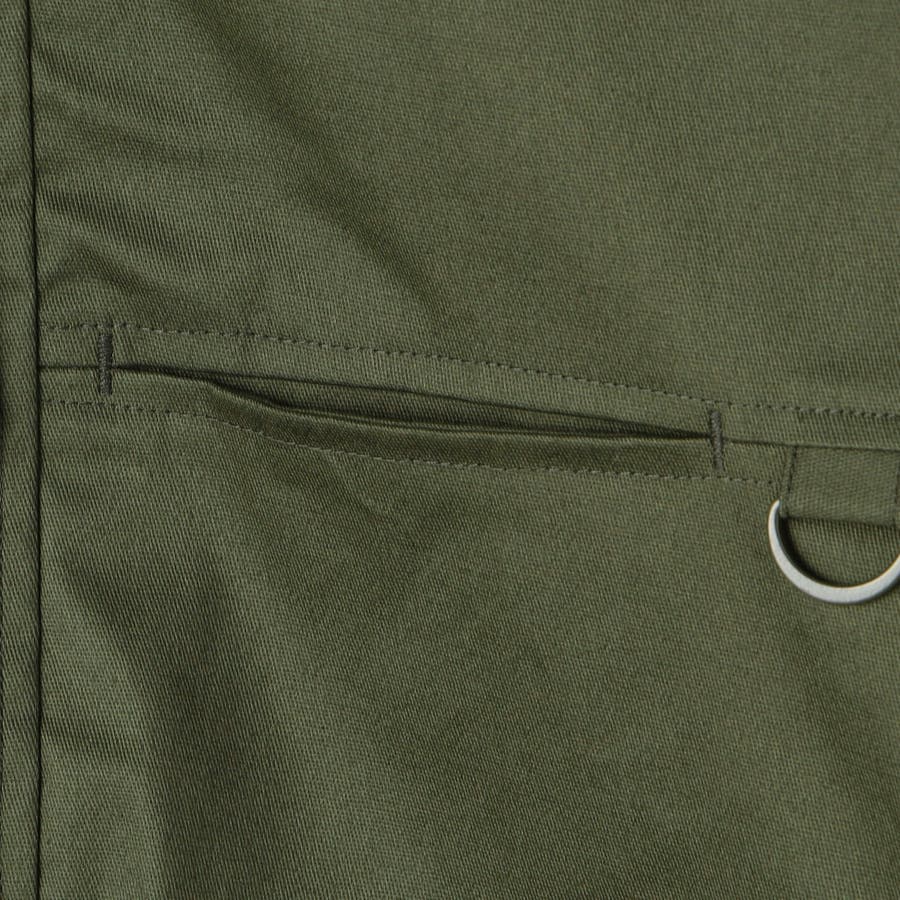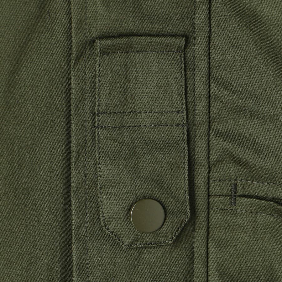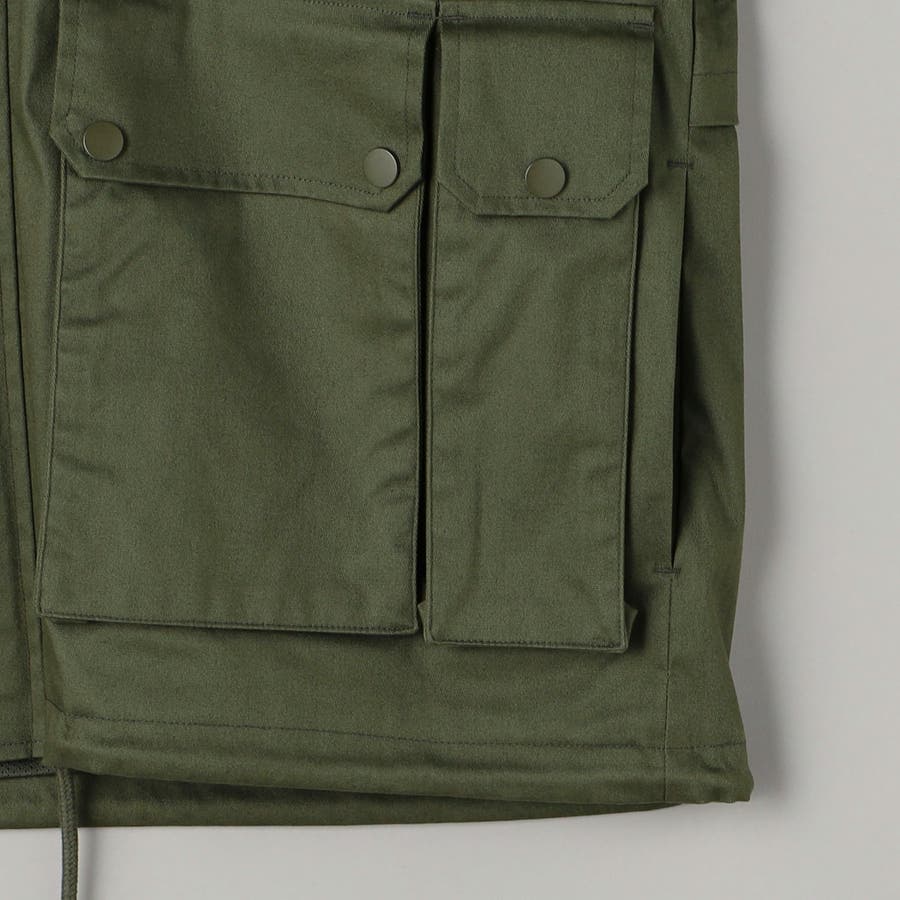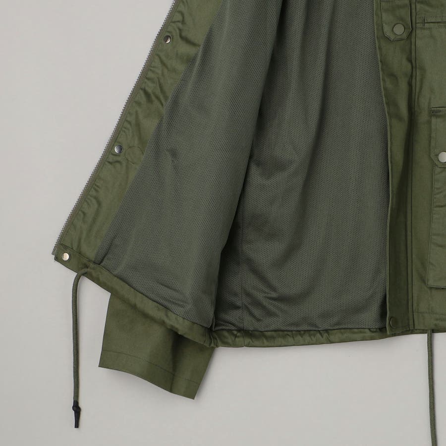 フロントのスクエアポケットでアクセントを効かせ、細かいディティールまでミリタリー要素を詰め込んだデザインの1着です。