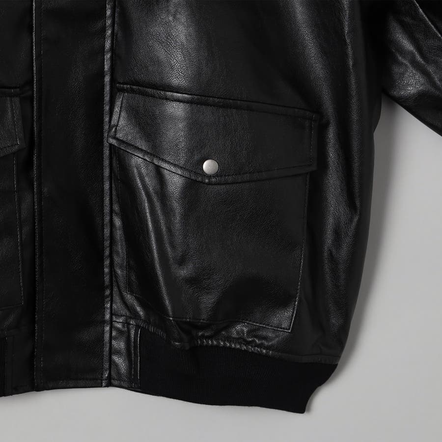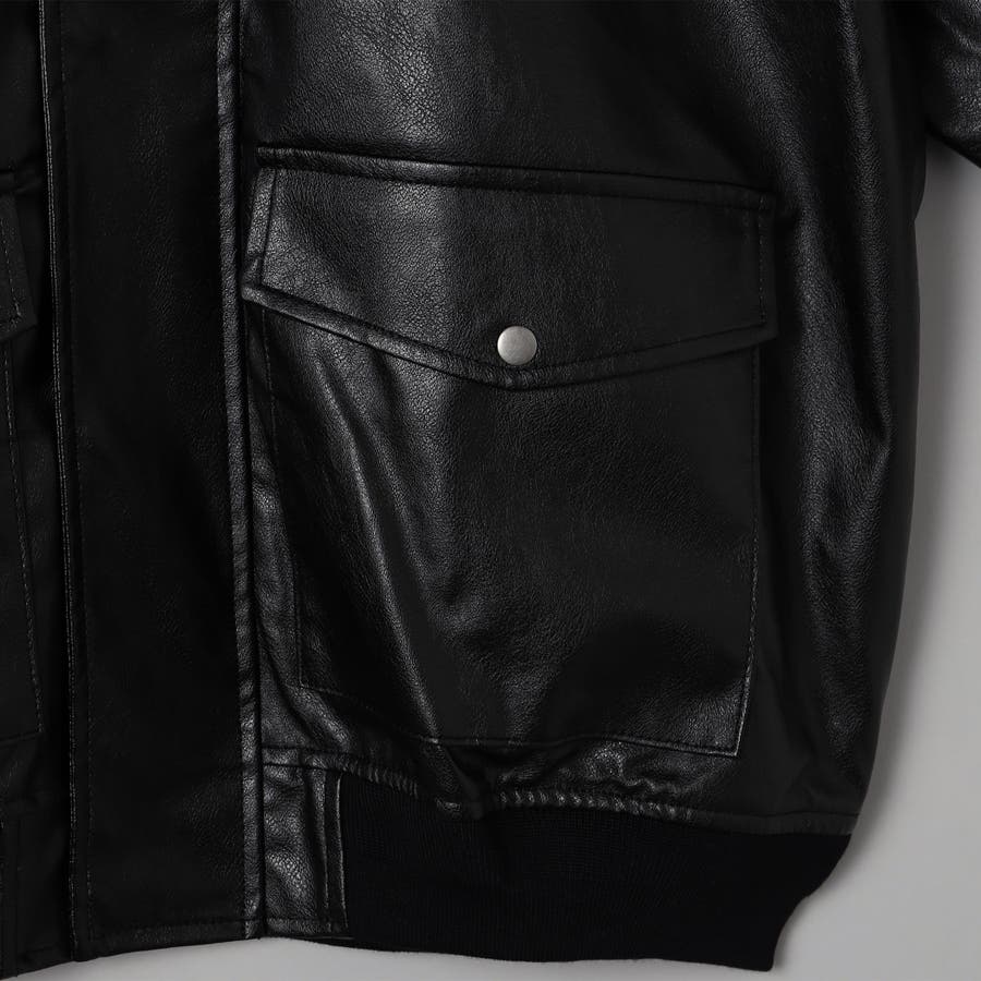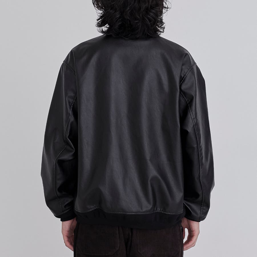 程よい光沢感とシボ感がヴィンテージの雰囲気漂うレザーライクブルゾン。