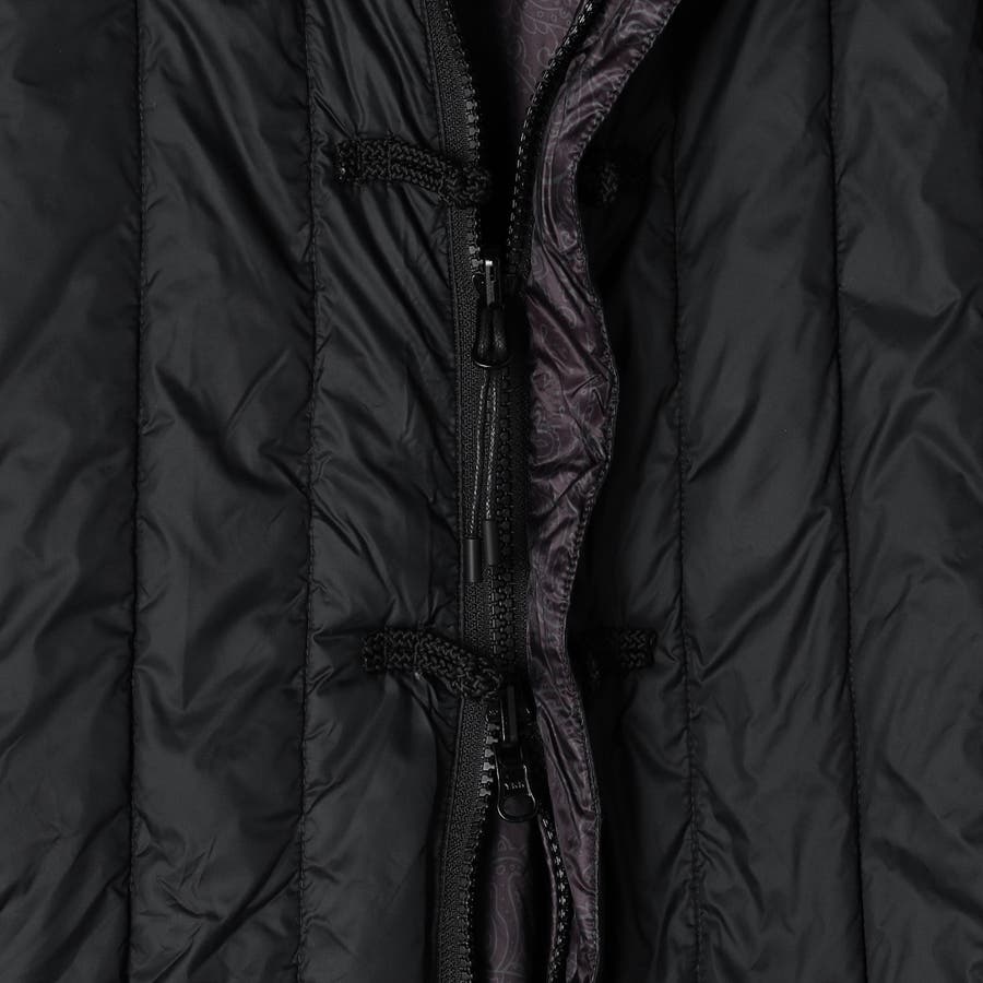 表面はラインキルトとチャイナボタン、裏面はペイズリー柄とWジップと両面違ったテイストのリバーシブル。