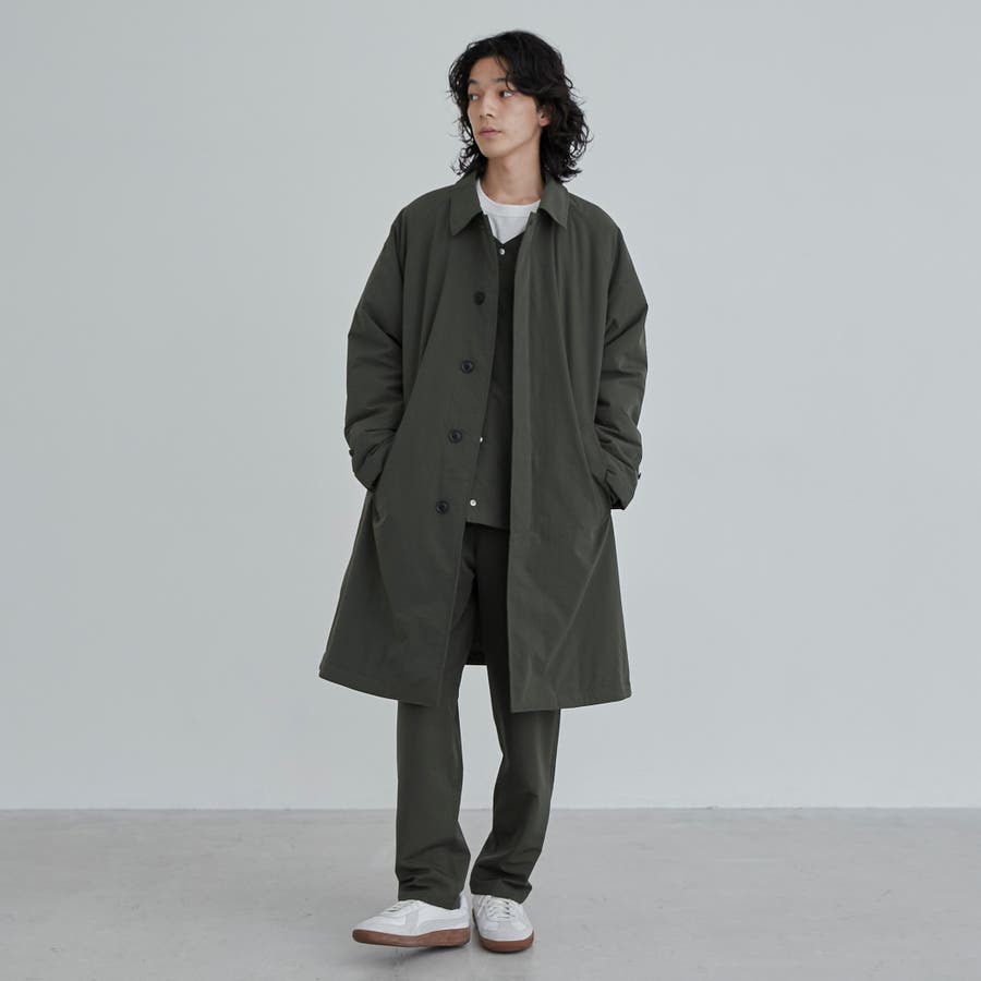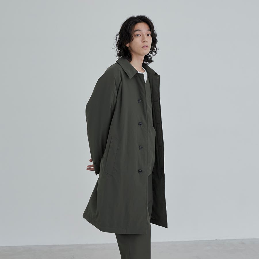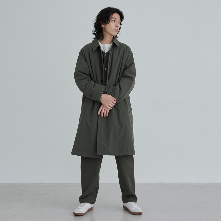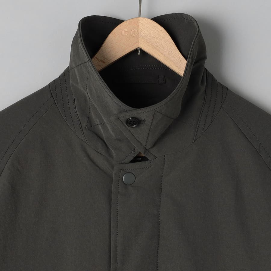 前立ては比翼仕立てになっている為、よりすっきりとした印象に。襟元はスタンドカラーにもなり、シンプルなデザインながらもトレンドライクな印象で、様々なテイストのスタイリングにも重宝します。