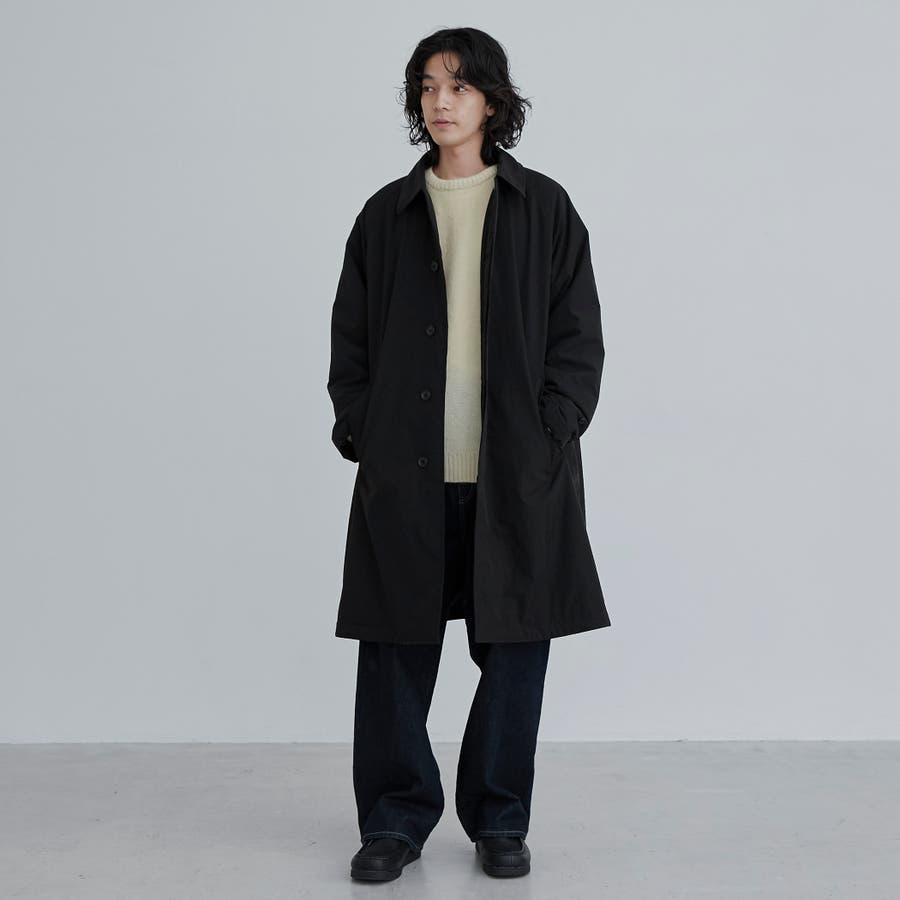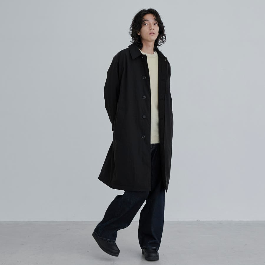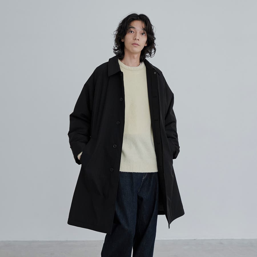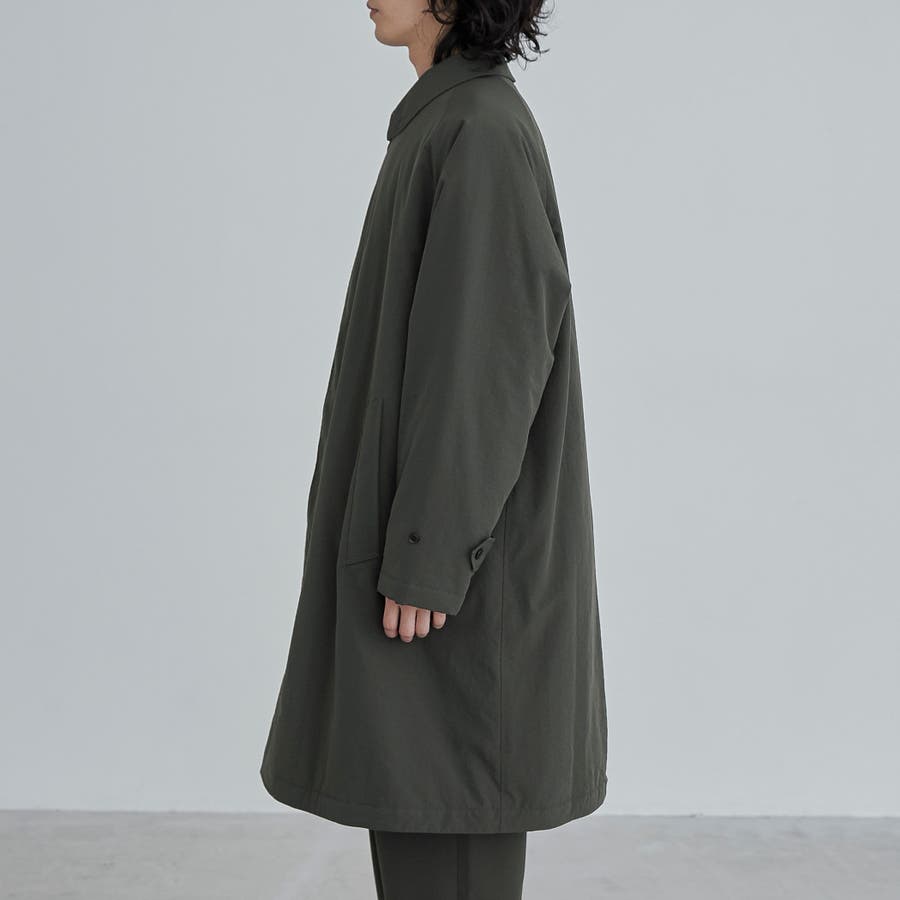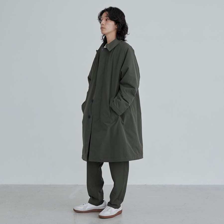 前立ては比翼仕立てになっている為、よりすっきりとした印象に。襟元はスタンドカラーにもなり、シンプルなデザインながらもトレンドライクな印象で、様々なテイストのスタイリングにも重宝します。