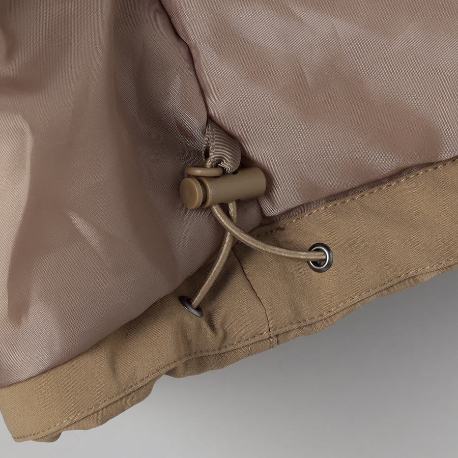 また袖部分はドットボタン、裾にはスピンドルも搭載しており、お好みのシルエットに変更も可能です。
