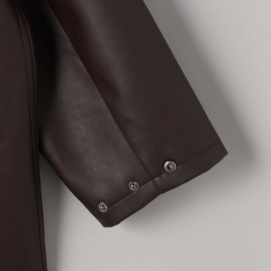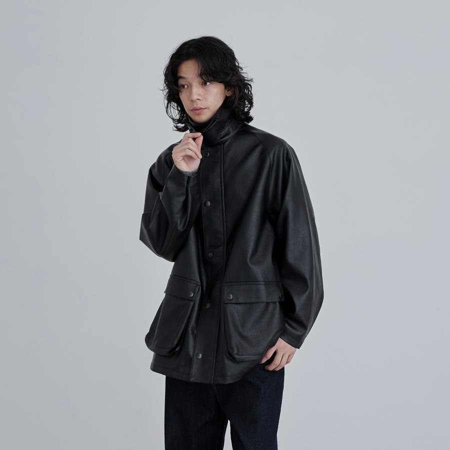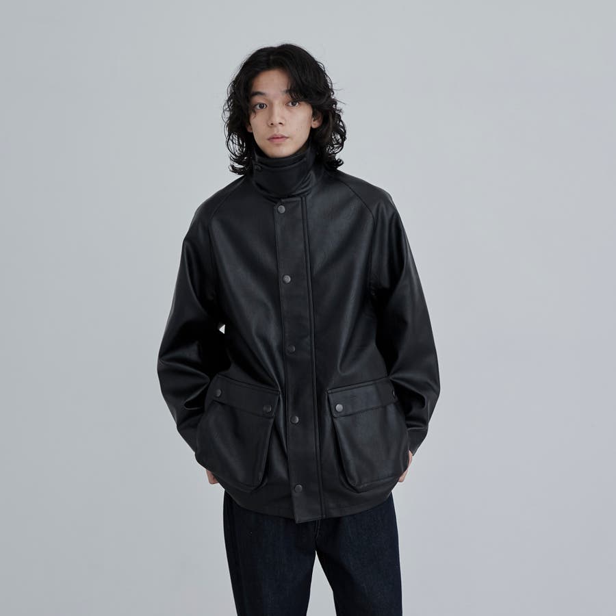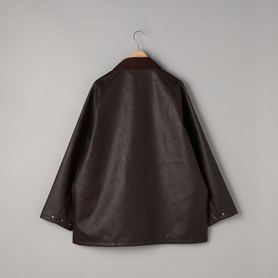 ハンティングジャケットのデザインを、レザーライクにする事でさらに今年らしい1着に。