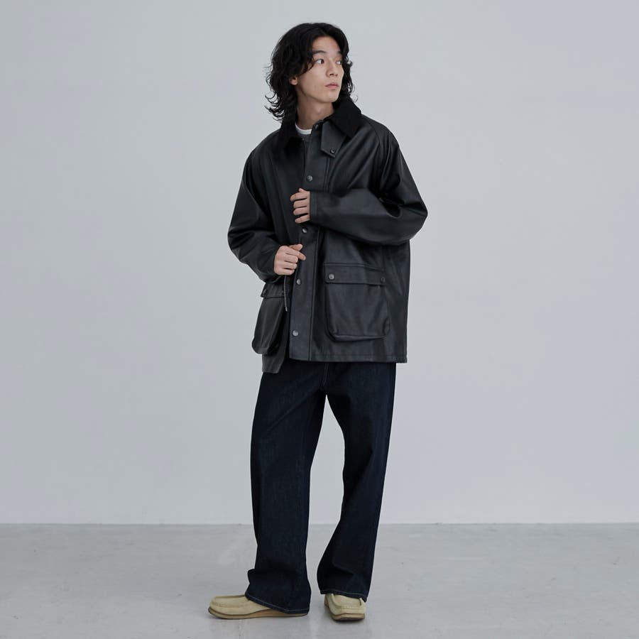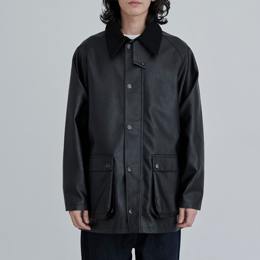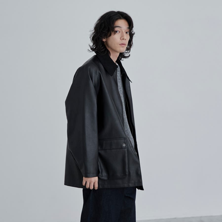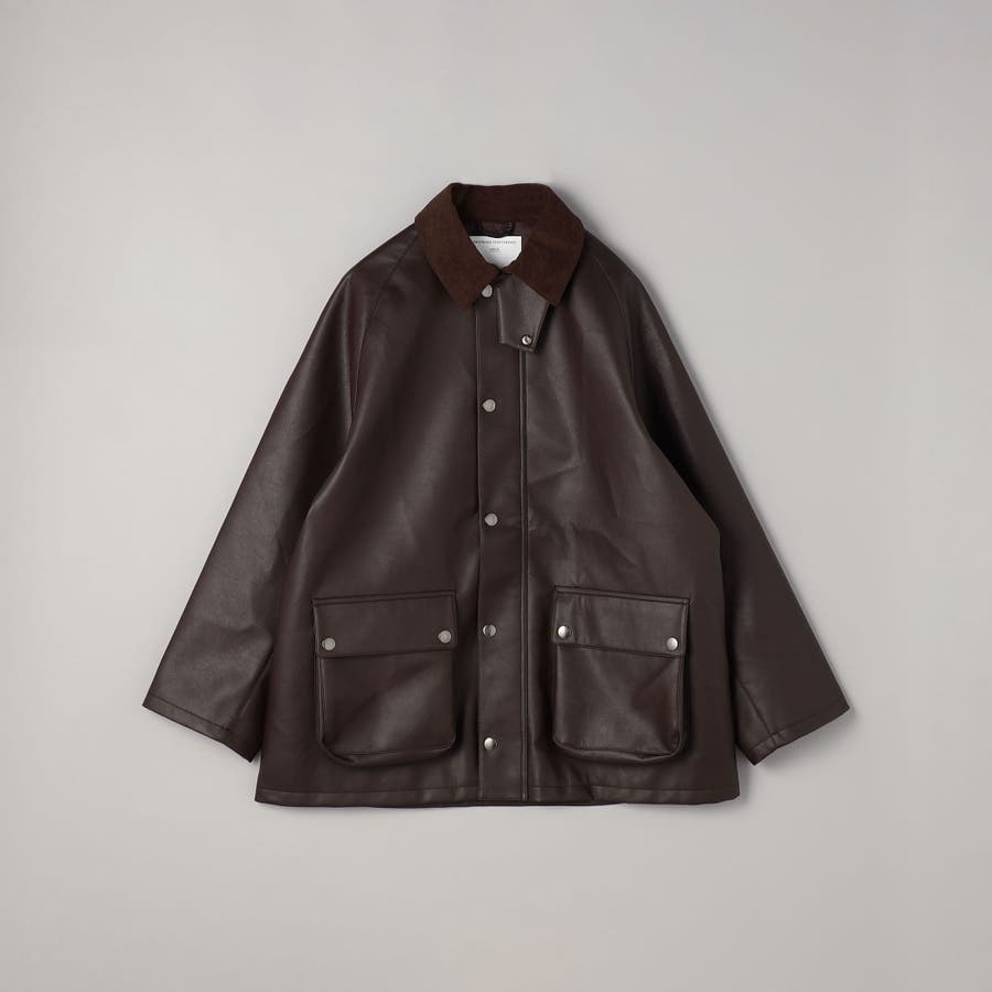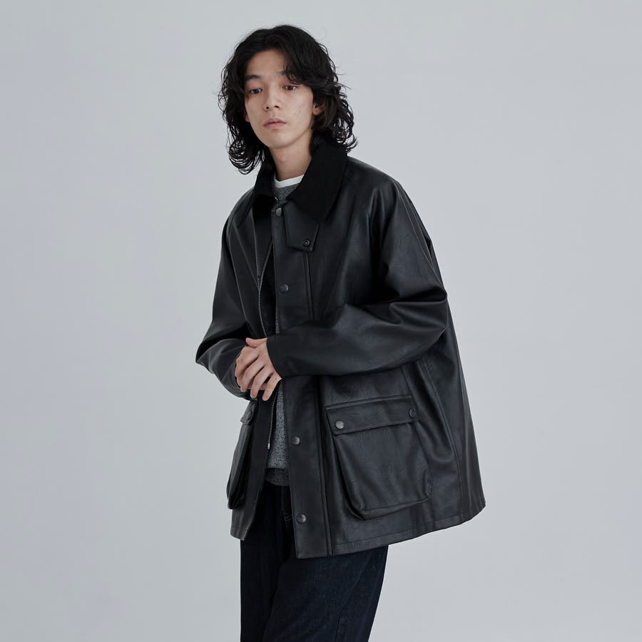 襟元のコーデュロイ切り替え×レザーライク調で大人カジュアルなハンティングジャケット