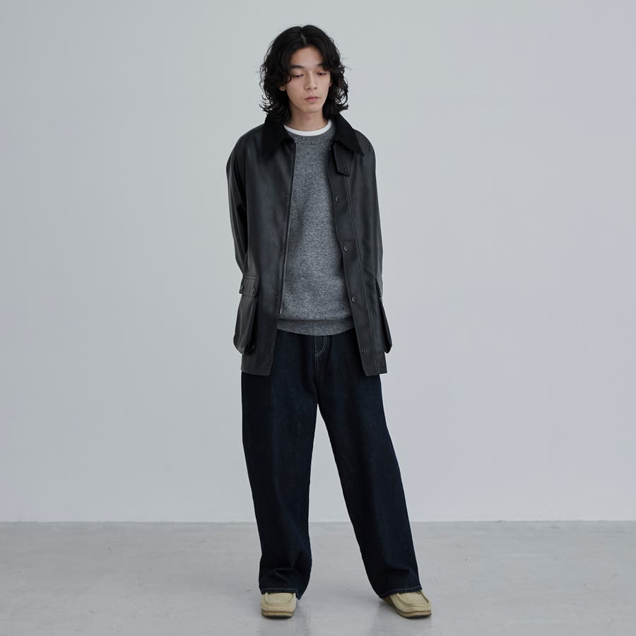 ゆったりとしたサイズ感、アームなども太めにとることでスウェットやニット等選ばず着用可能です。