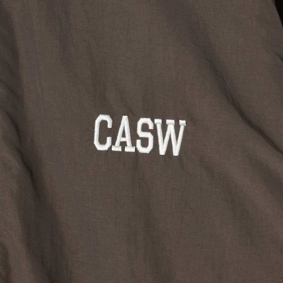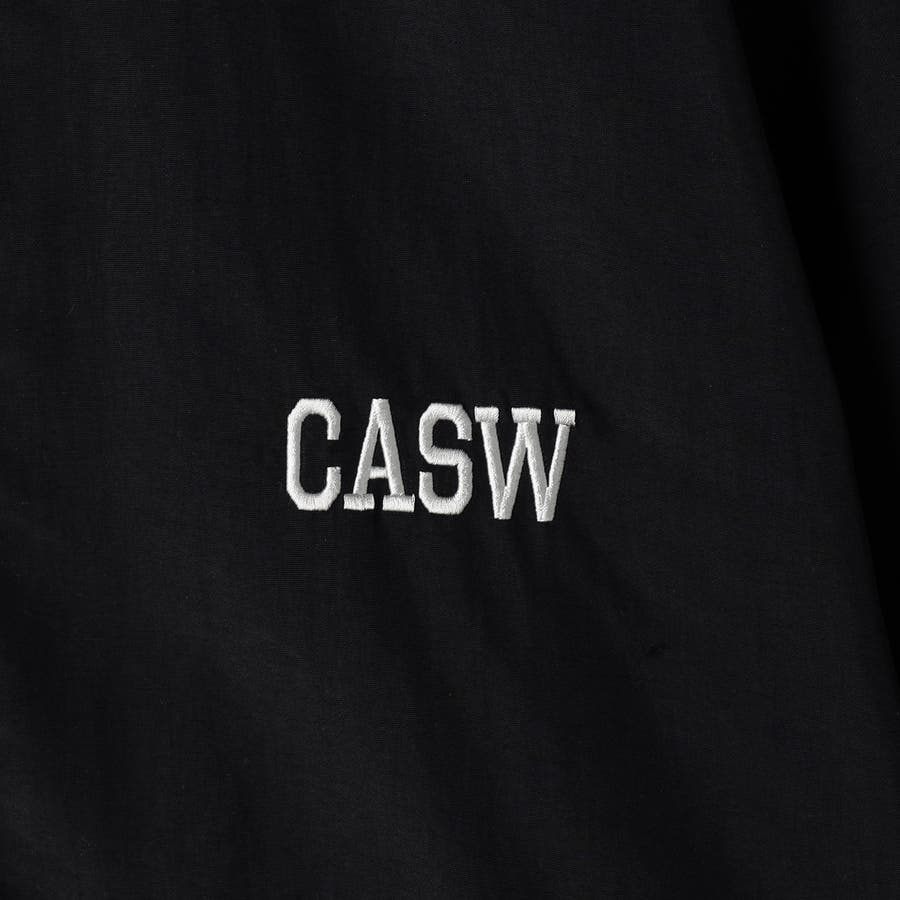 表はマットなナイロン生地を用い、左胸にCASW刺繍、背面上部にタグを配しています。
