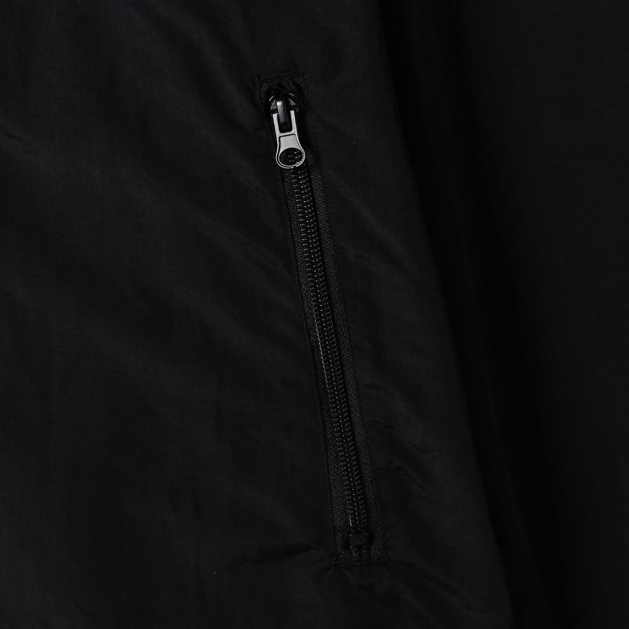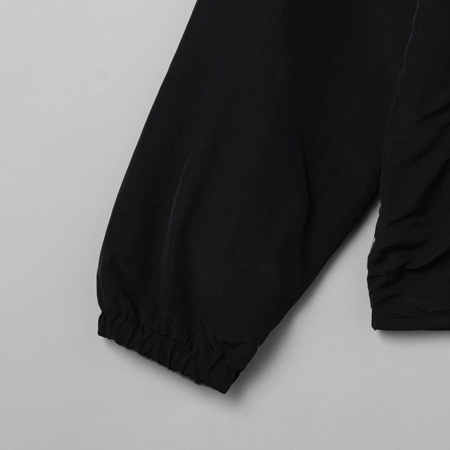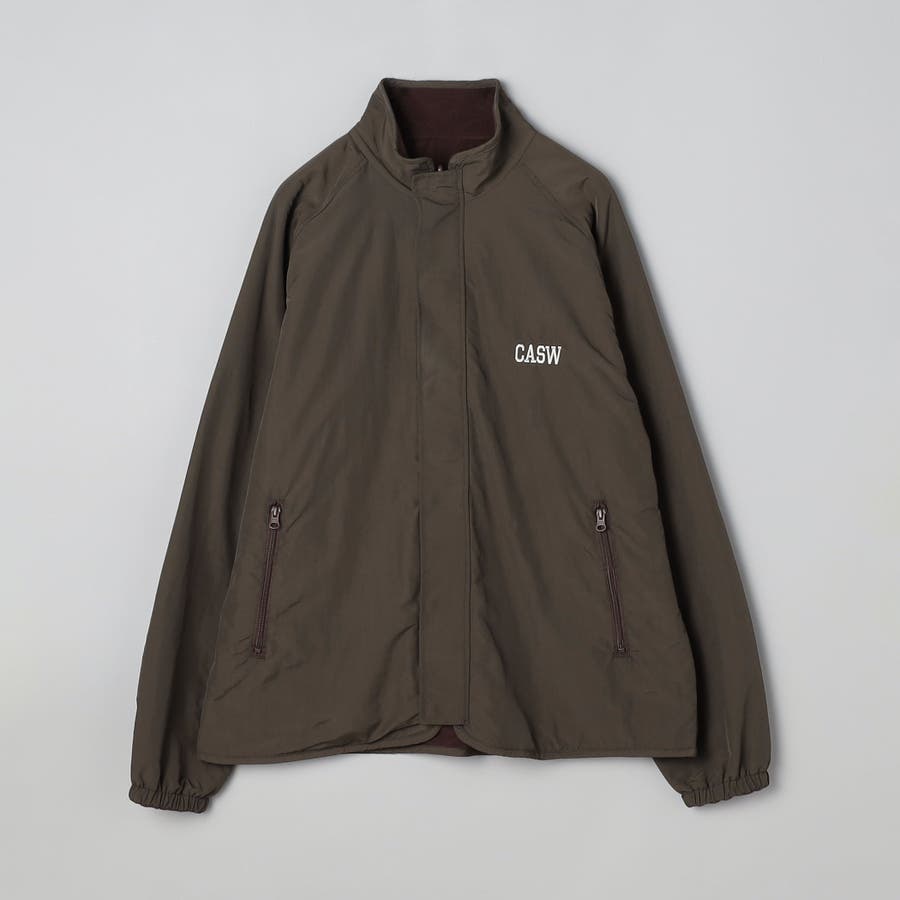 シルエットはややゆとりがあり、スタンドカラーやラグランスリーブ、表裏で異なるフロント部分が特徴。