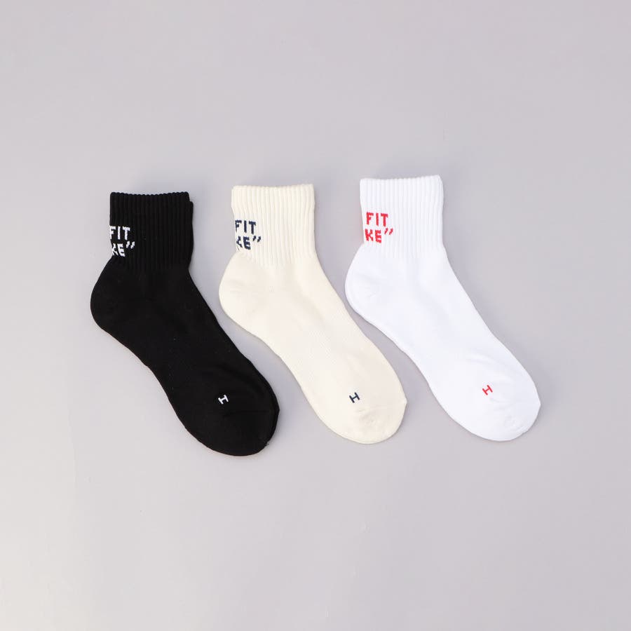足首部分にロゴをデザインし、コミカルな表情のソックス3足セット。