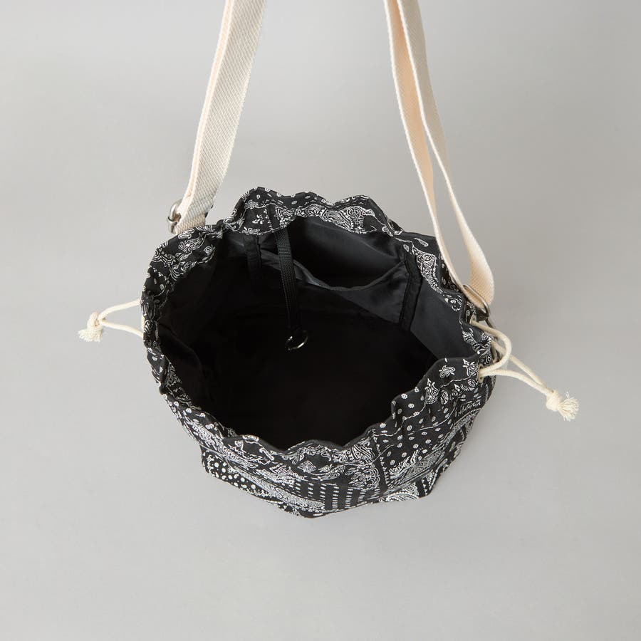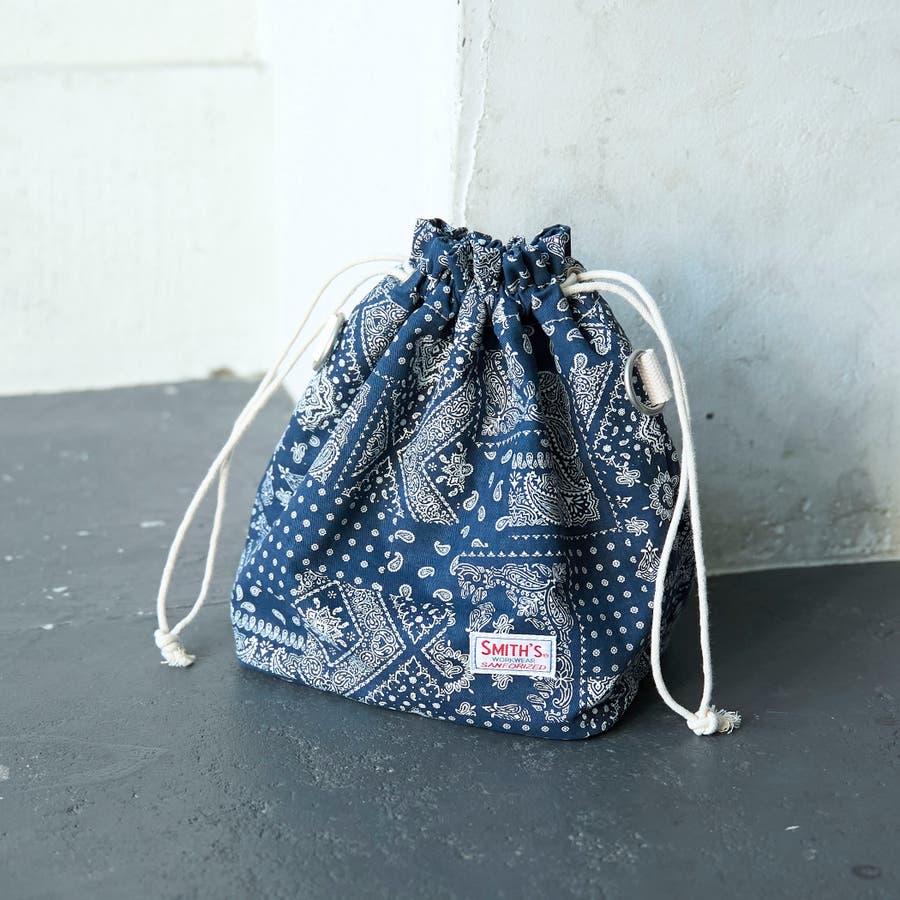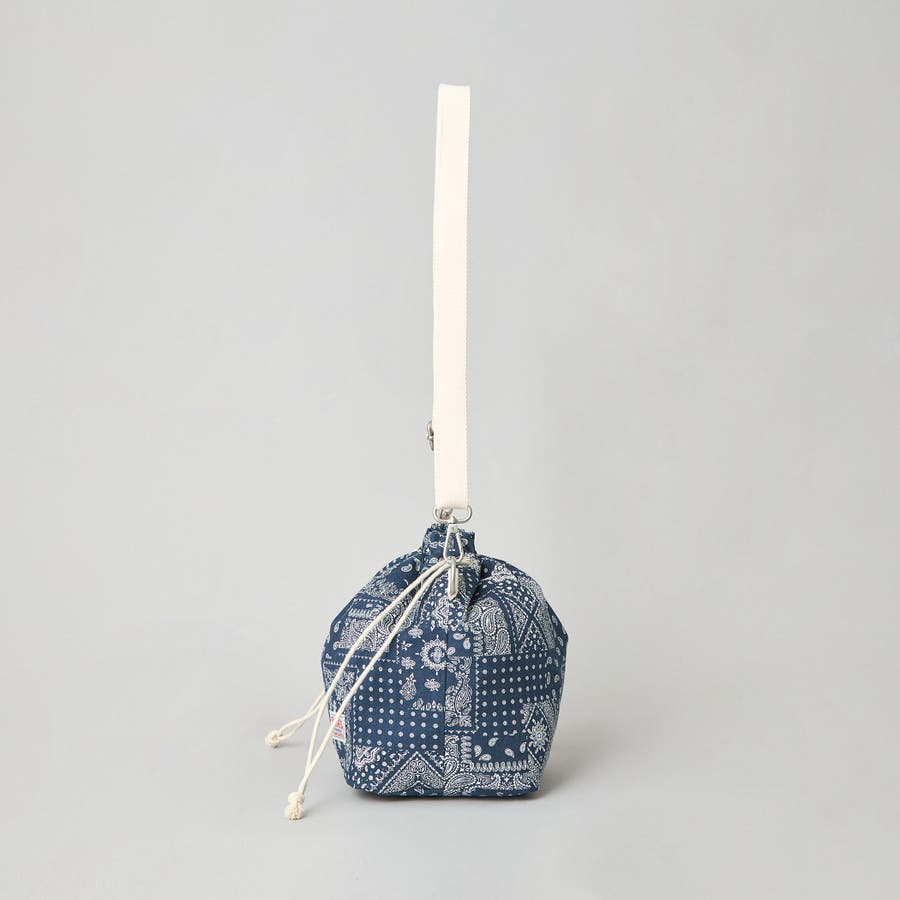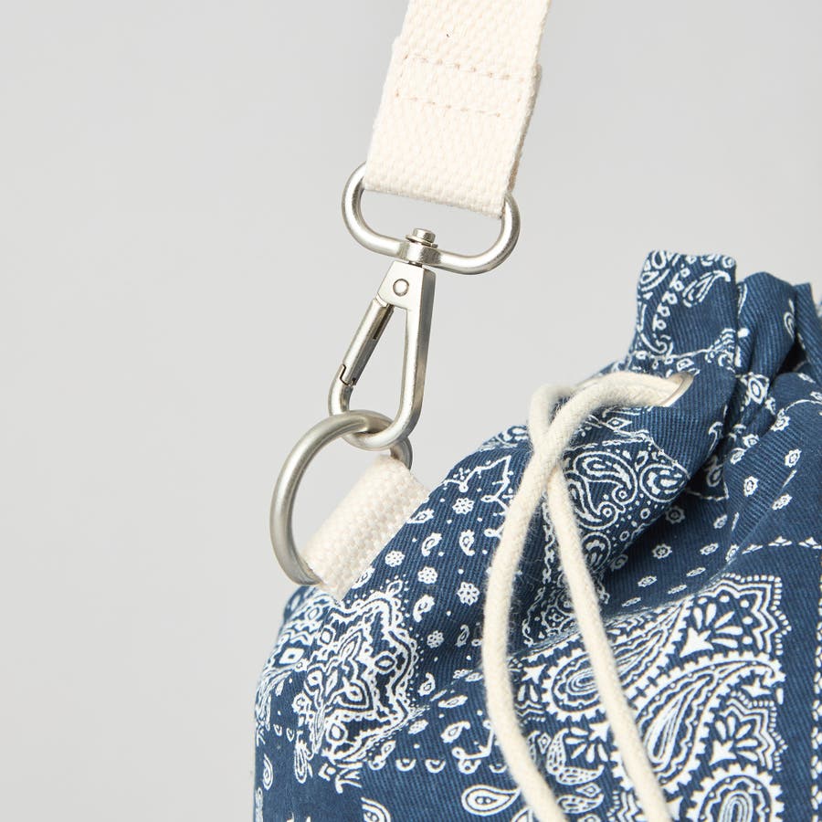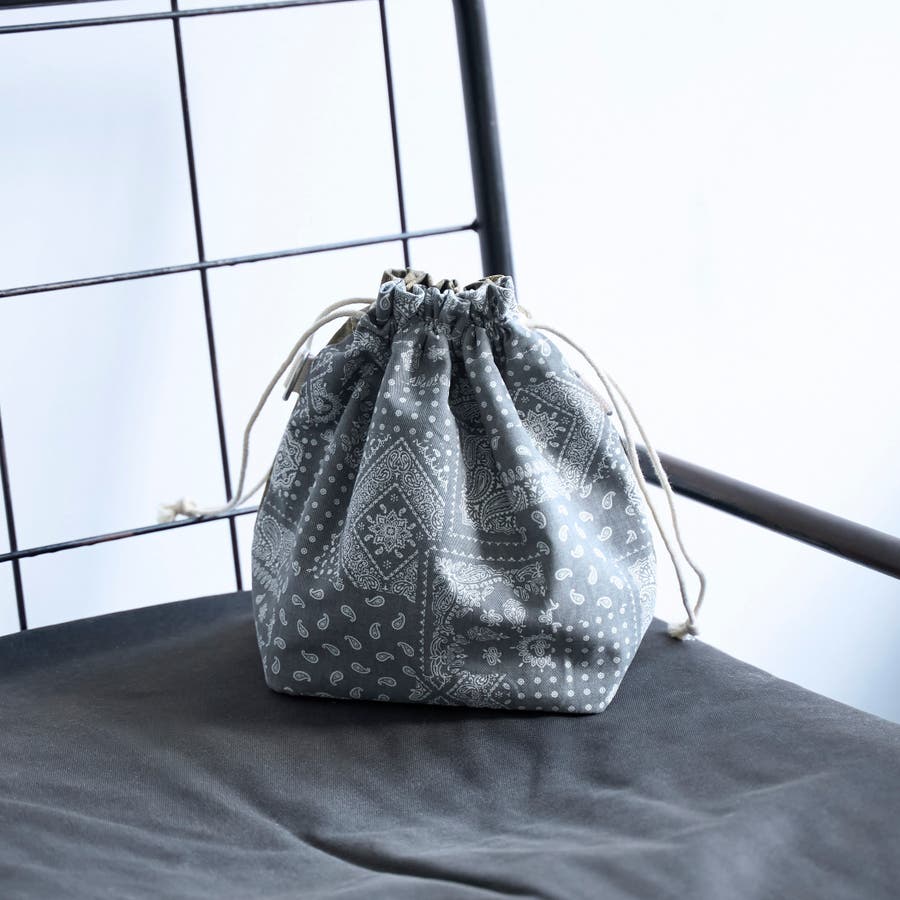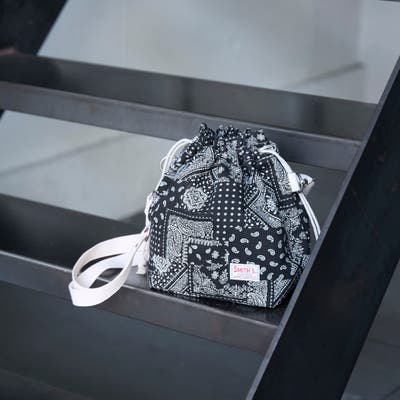 ペイズリー柄がデザインされた、コンパクトな巾着型バッグ。