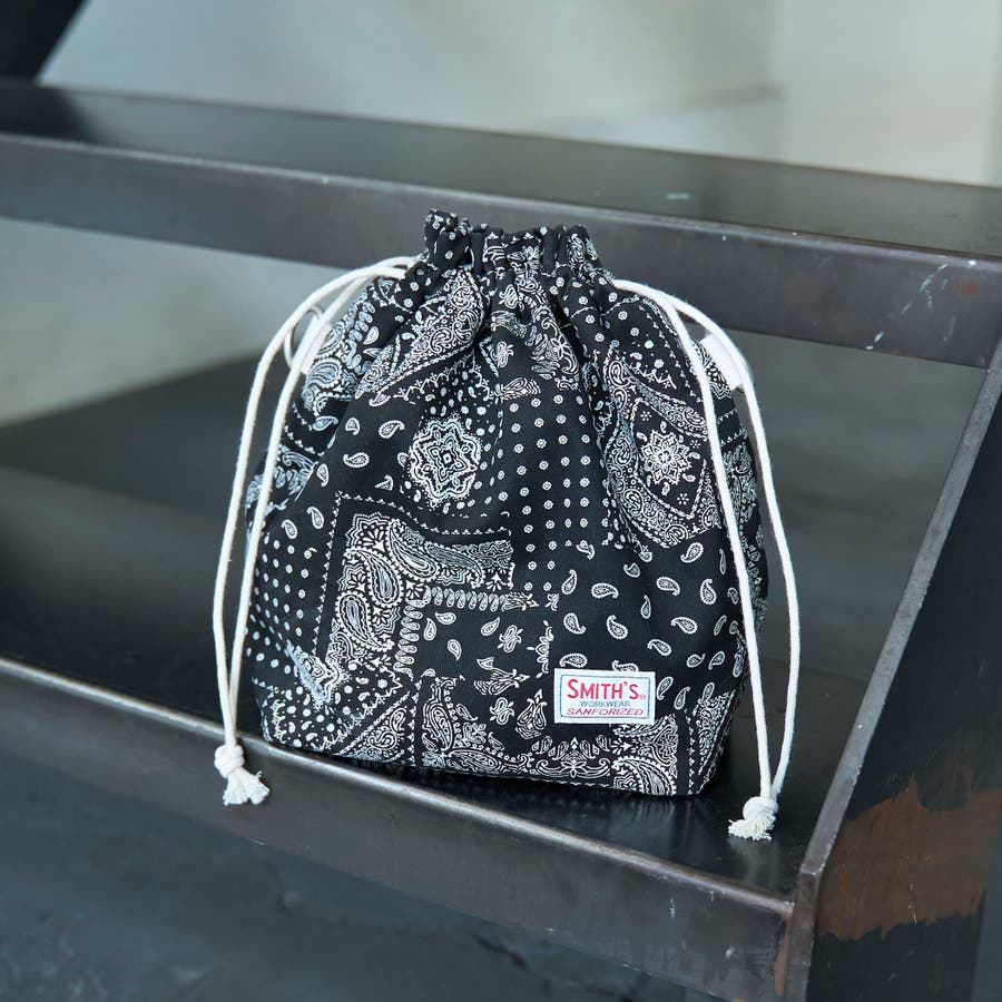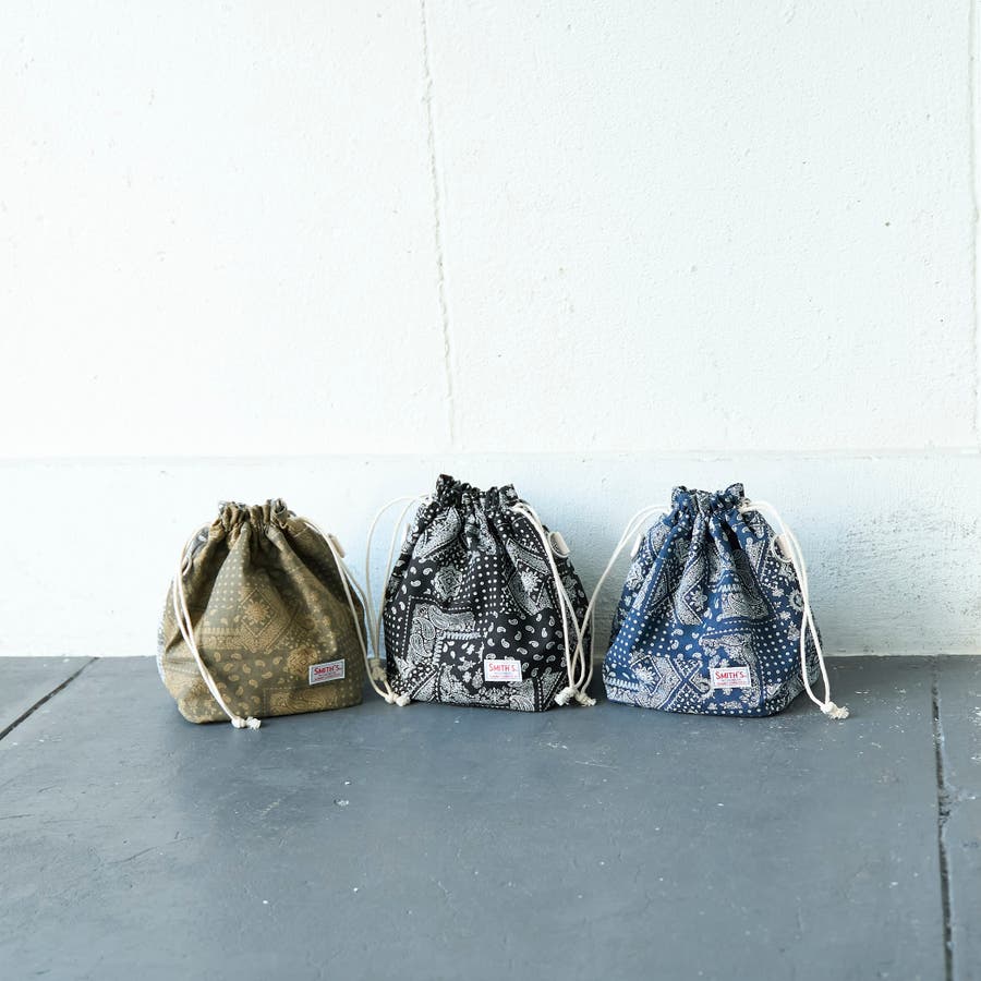 COEN別注でお作りした、コーディネートに映えるペイズリー柄の巾着