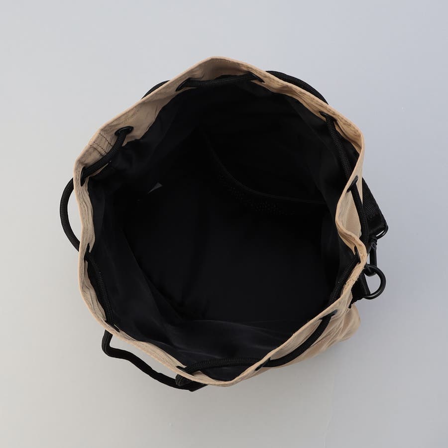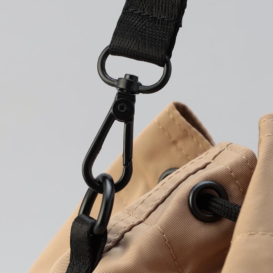 〇ショルダーベルト付きで、手持ち・肩掛けの2WAYで使える巾着型デザイン。スタイルに合わせて持ち方を変えられます。