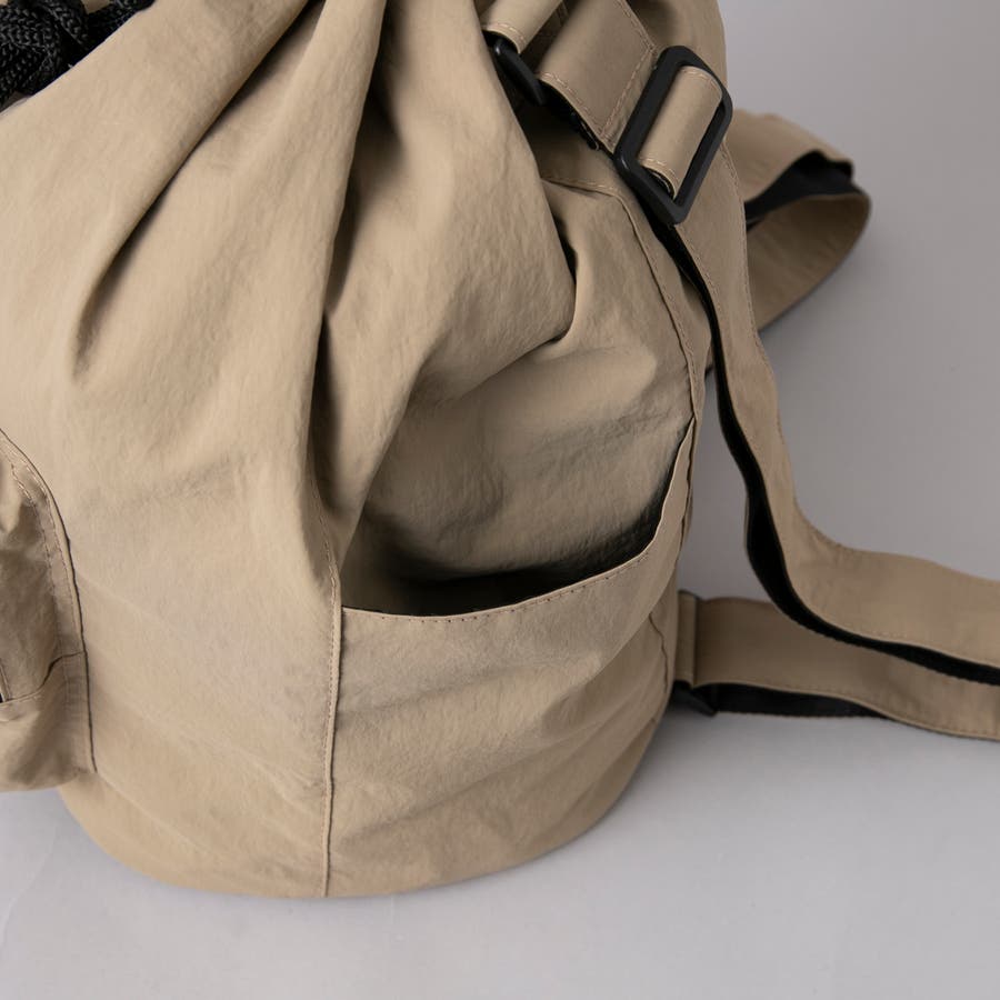 軽いナイロン素材を使い大きなマチの大容量でデイリー使いにぴったり。