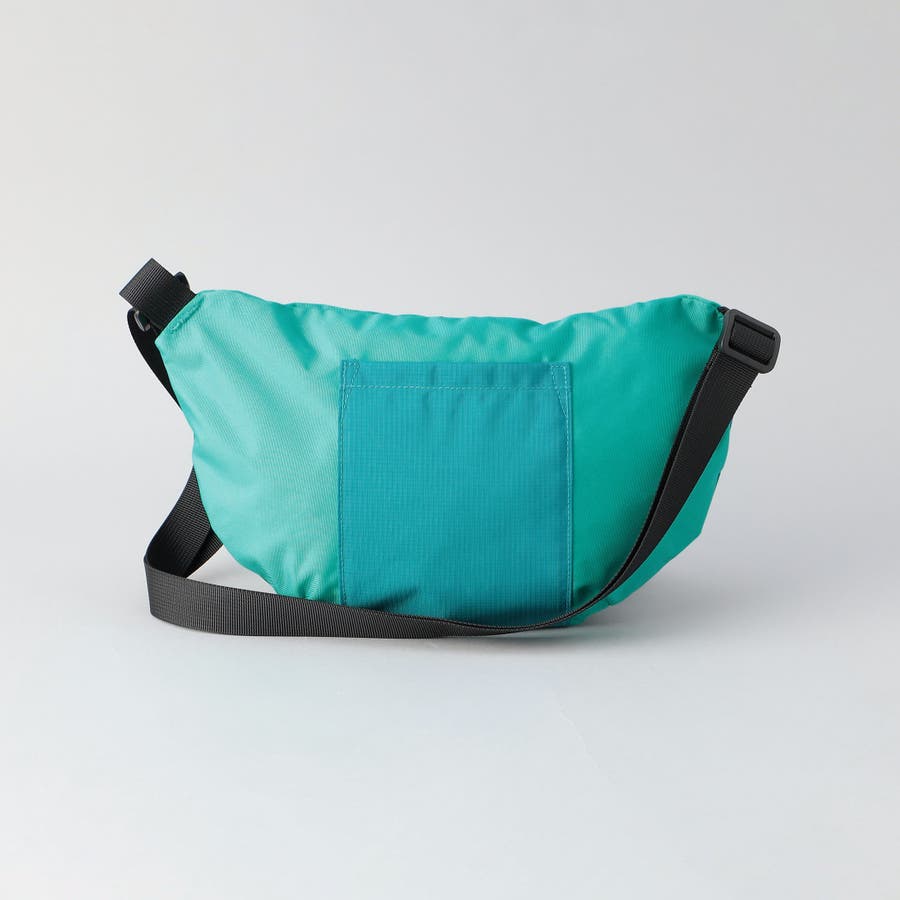 外ポケットとマチ部分は異素材で切り替え、ベルト部分は肩に優しくなじむ平テープを使用しています。