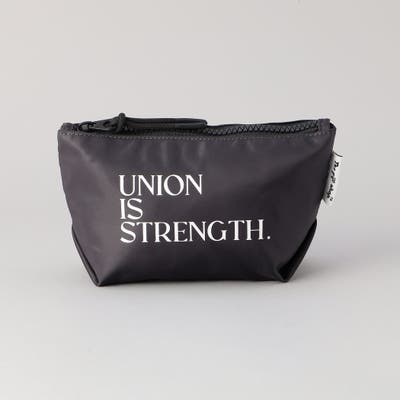 印象的なロゴデザインのジップポーチ