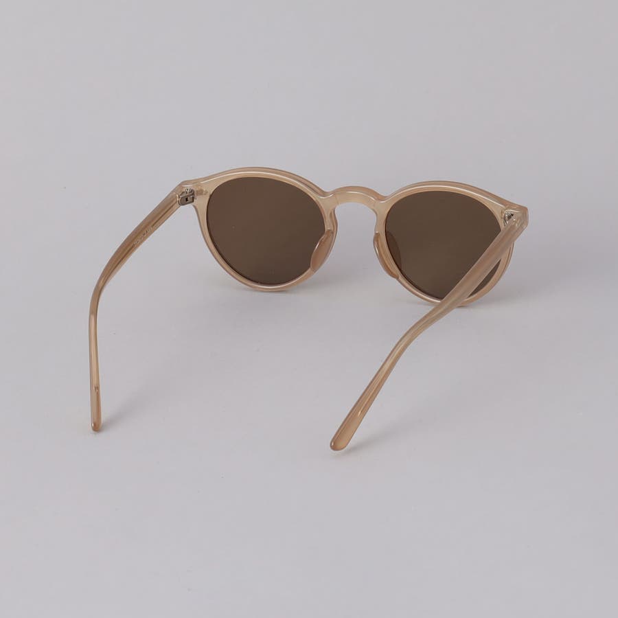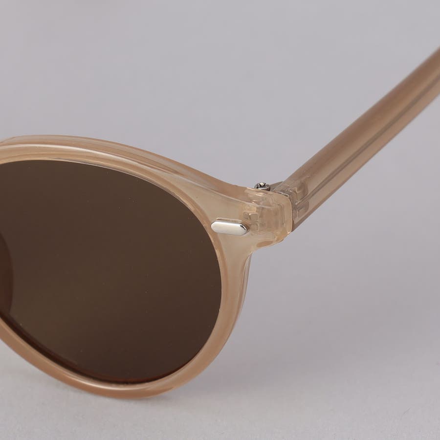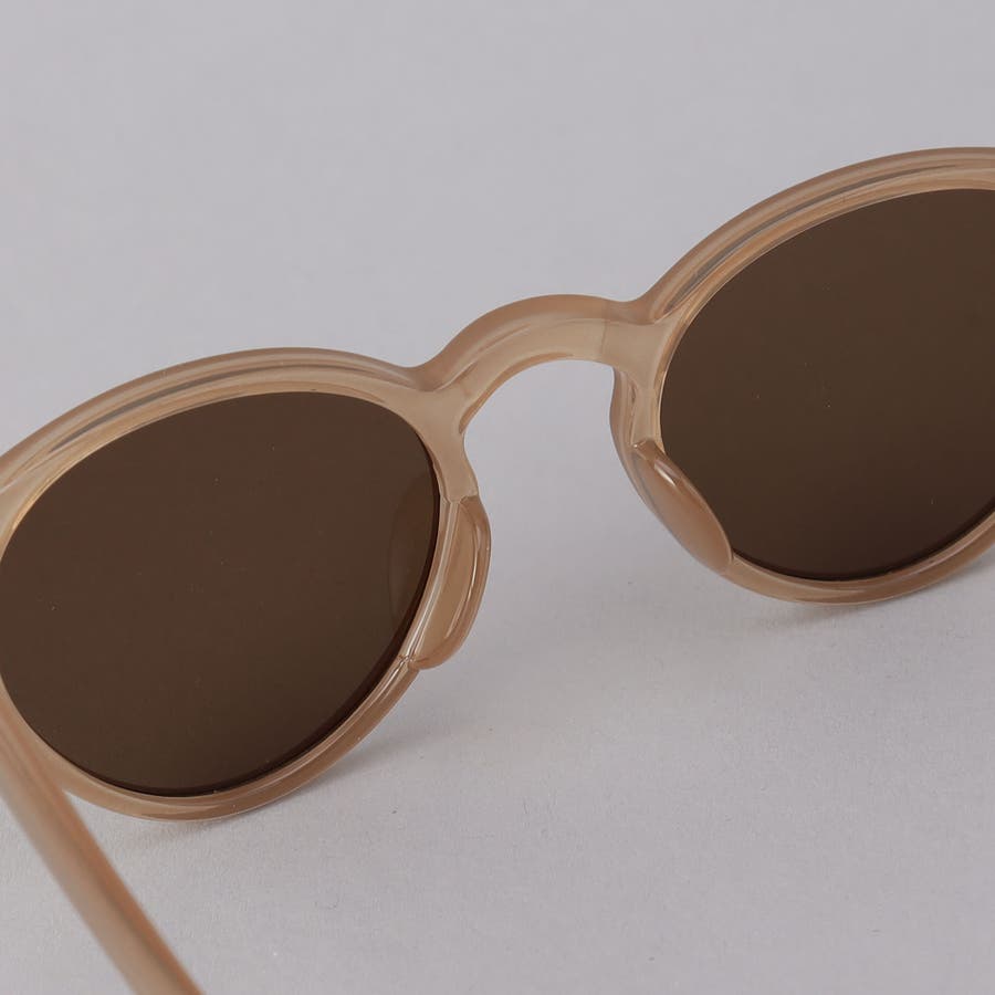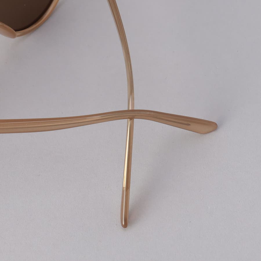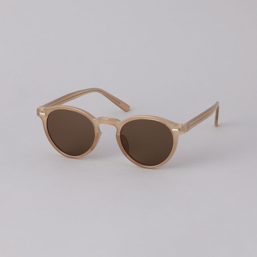 丸みを帯びた逆三角形のフレームで、優しい印象のサングラス。