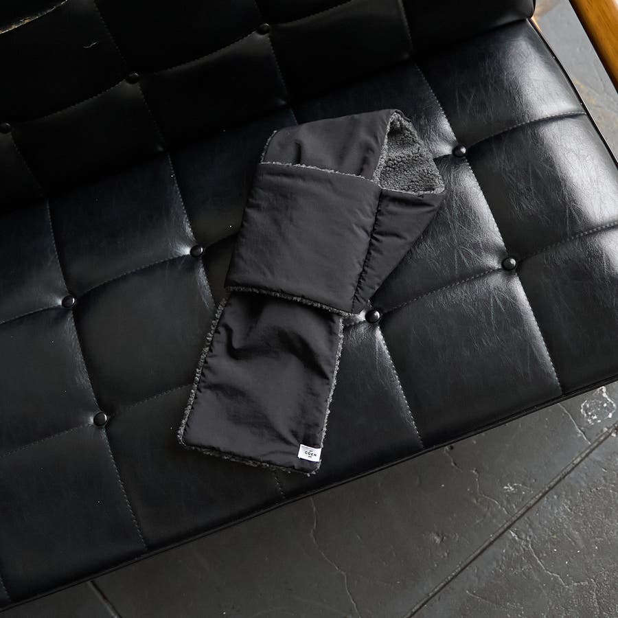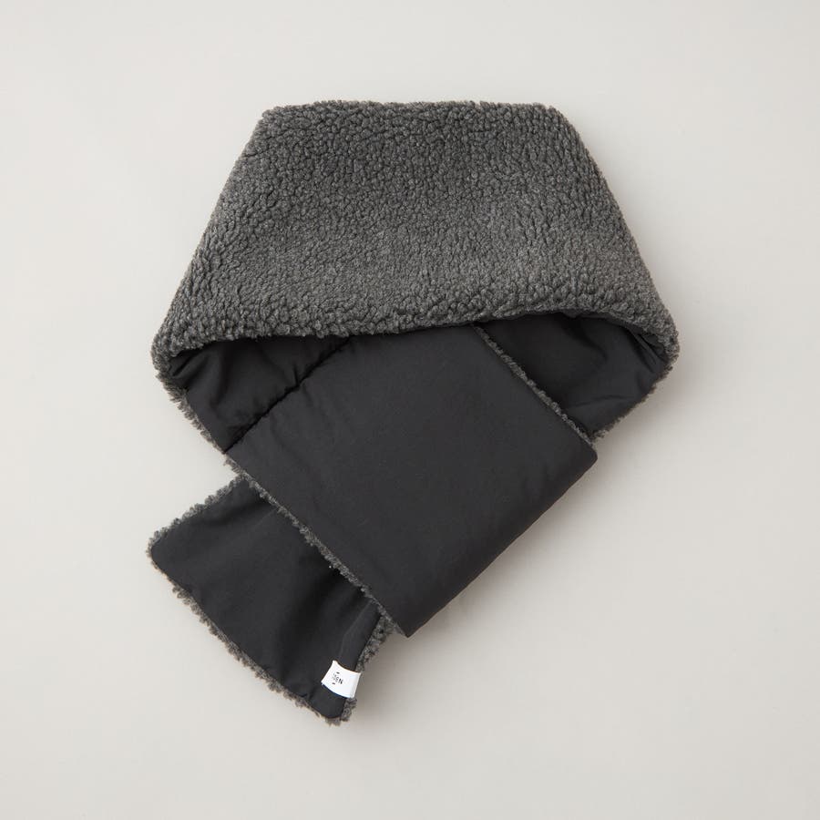 リバーシブル仕様で、気分やスタイリングに合わせて使い分けられるマフラー。