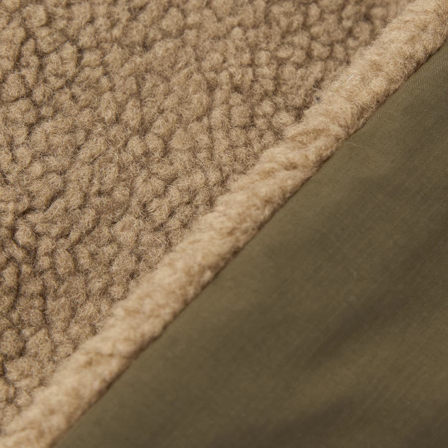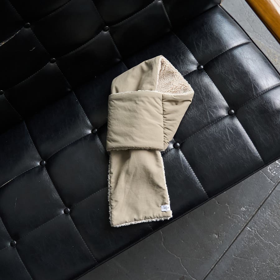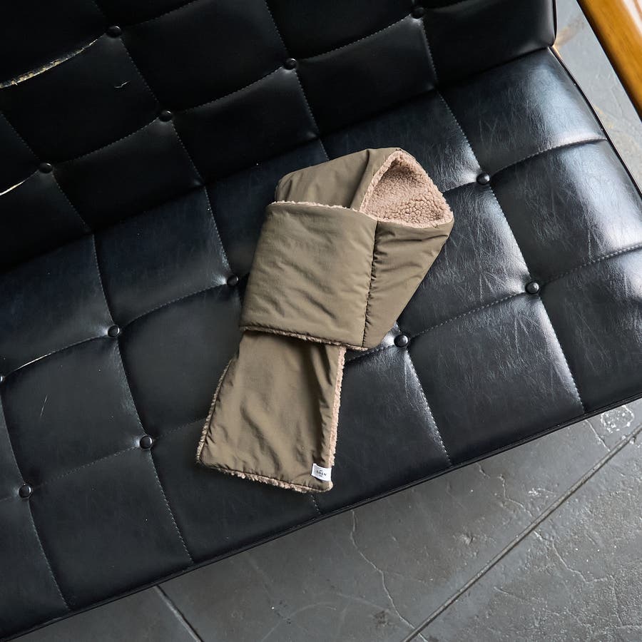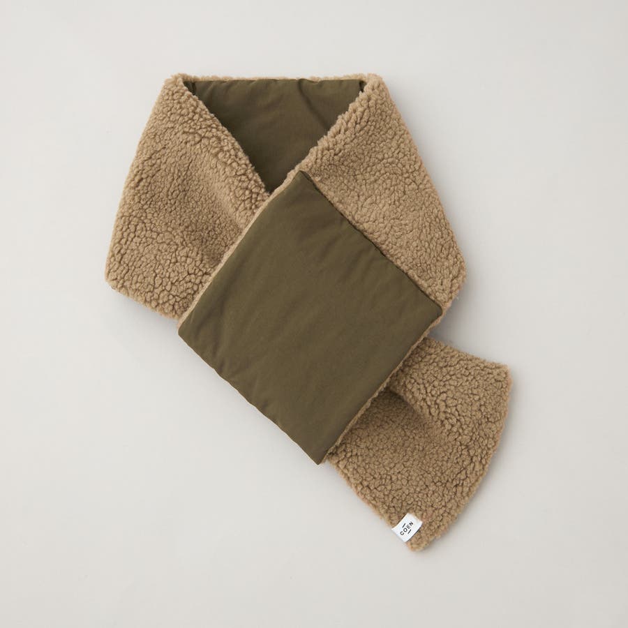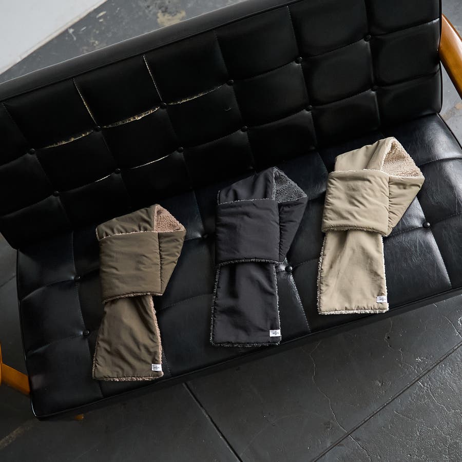 冬の装いにさりげなくミリタリー感を添えるリバーシブルマフラー