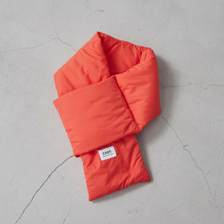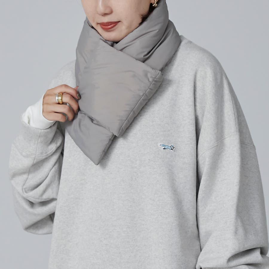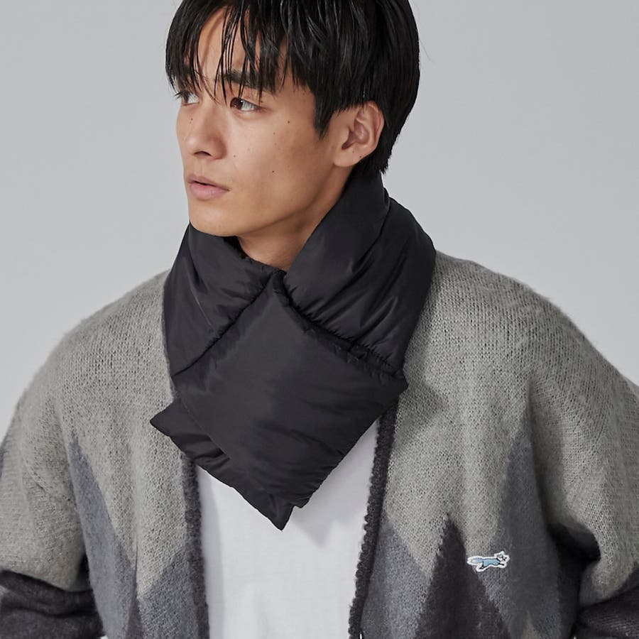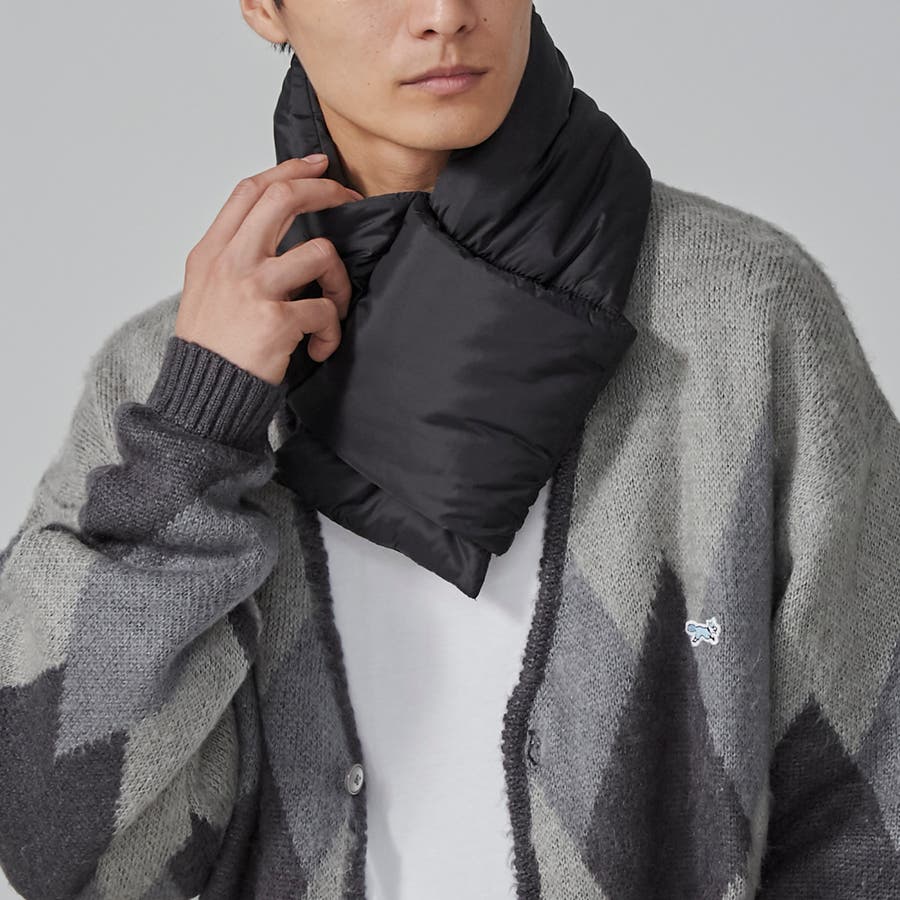 ■ふんわりとした中綿を使用した、ベーシックデザインのパディングマフラー。