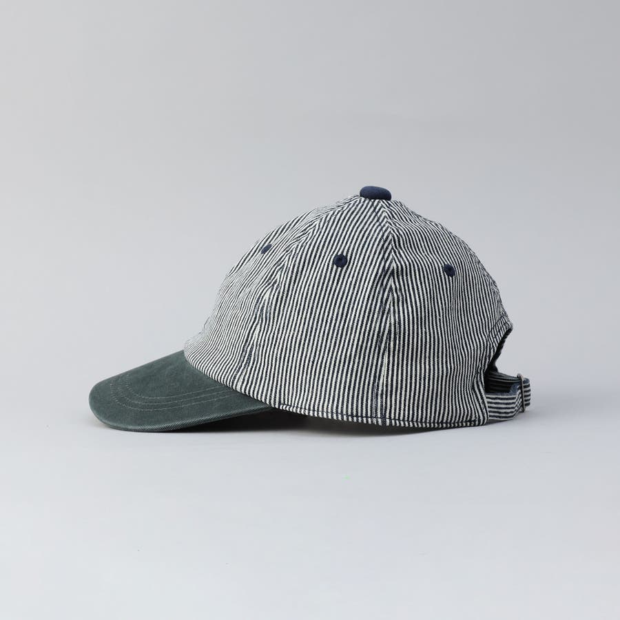 クラウンはストライプ柄、ブリムは無地のメリハリがあるデザインのキャップ。