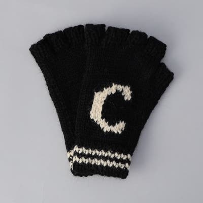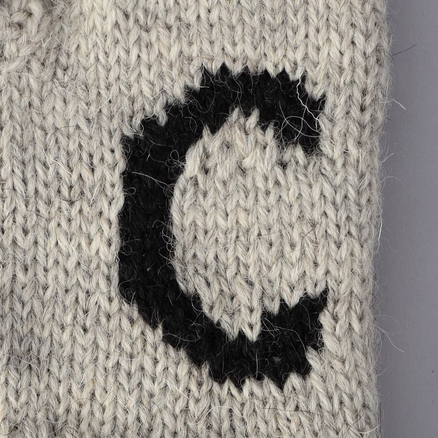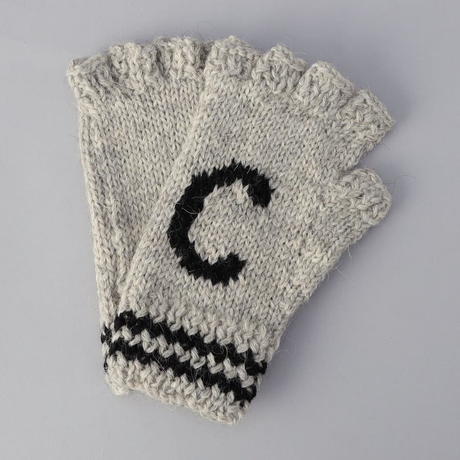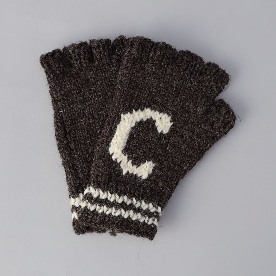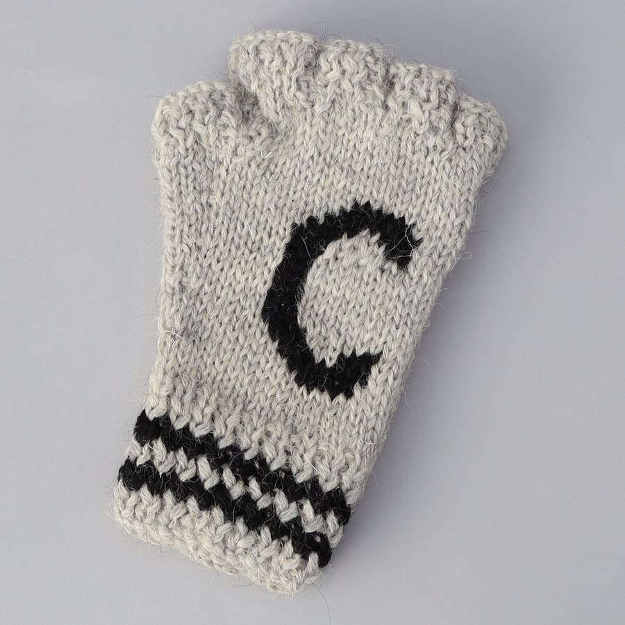 甲にデザインしたブランドイニシャル「C」とダブルラインの編み模様がアクセントをのニットグローブ。