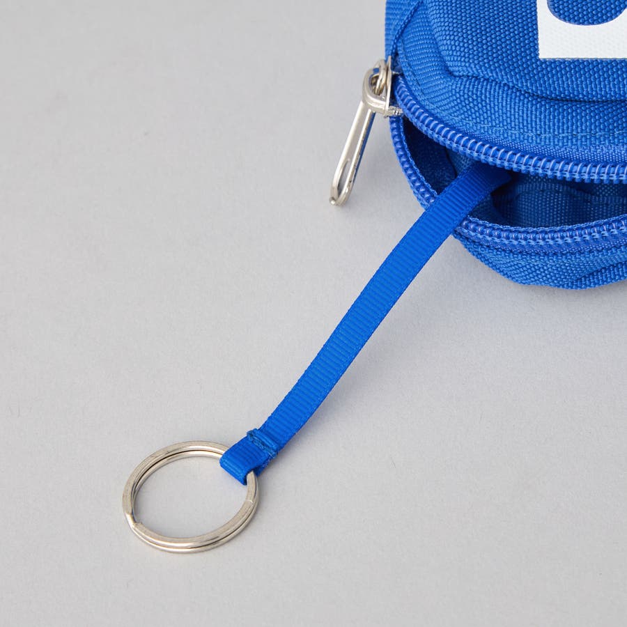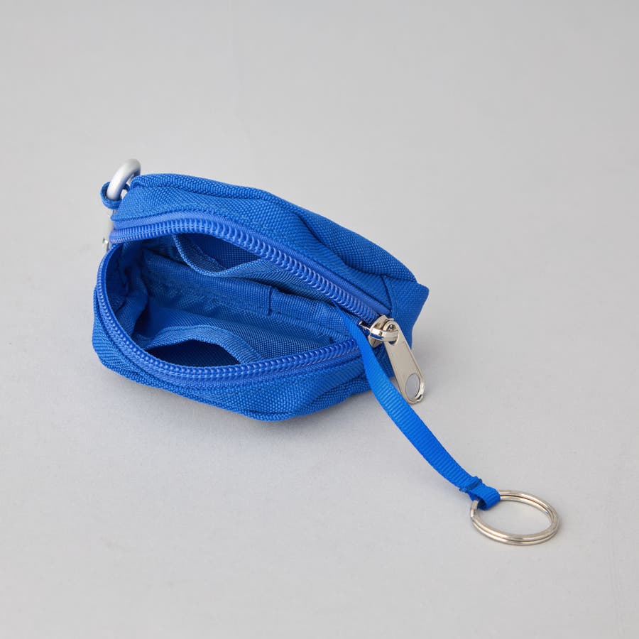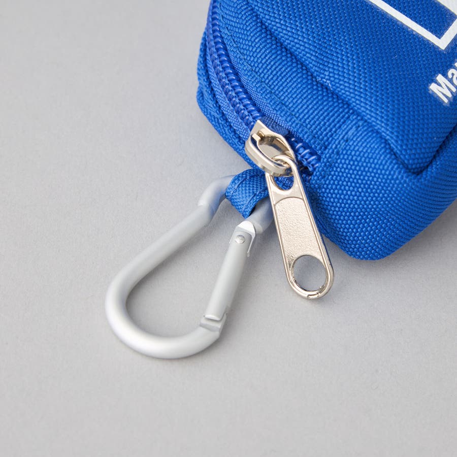 外側にカラビナが付いており、鞄やボトムのベルトループなどに取り付けが可能。