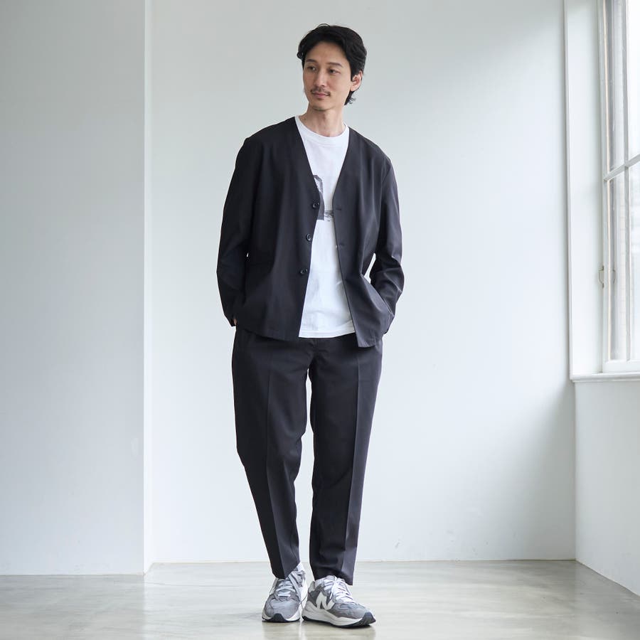 デニムなどのカジュアルな合わせとしてももちろん楽しめますが、ジャケットスタイルの外しとしてもオススメです。