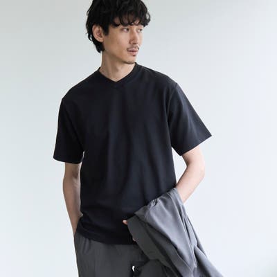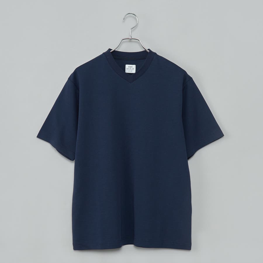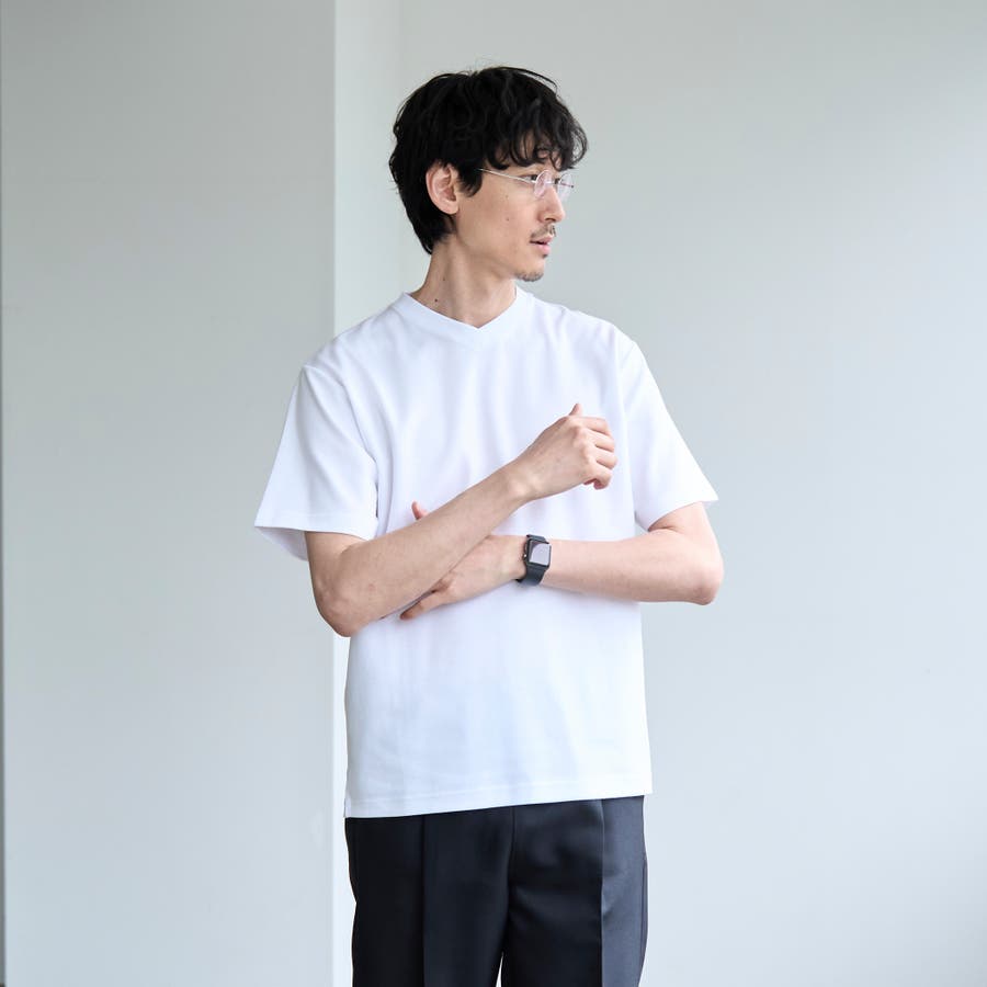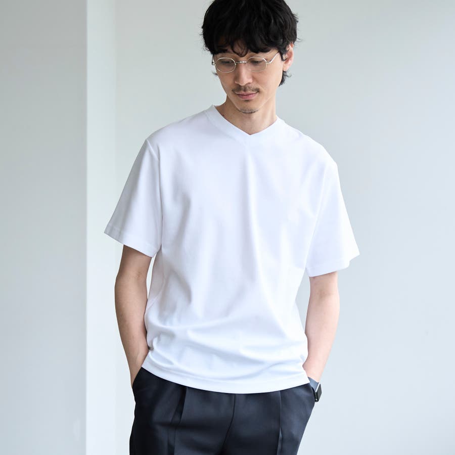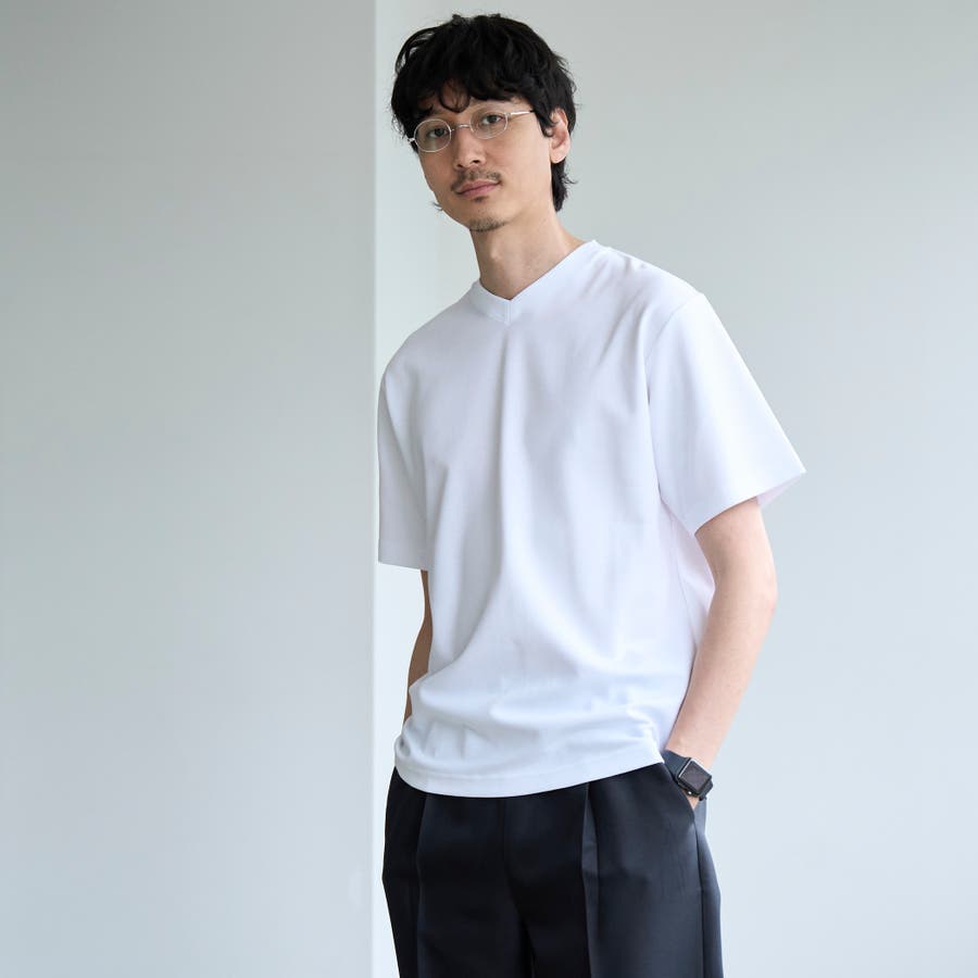 プレーティング編みされたサラっとした着心地が特徴 のVネックTシャツ