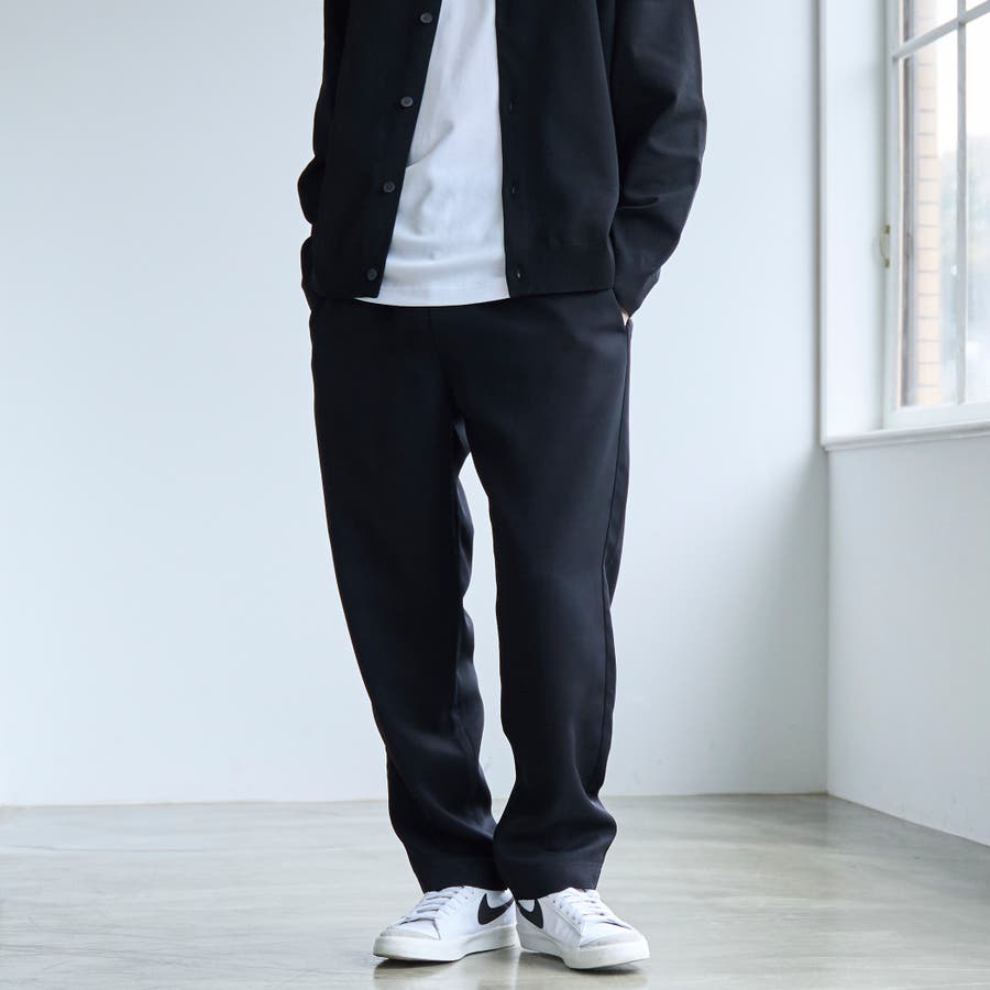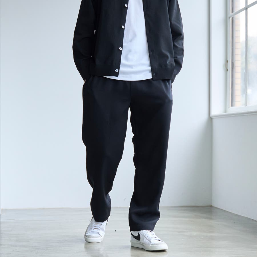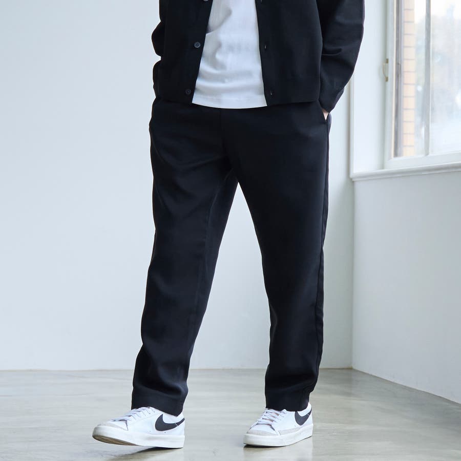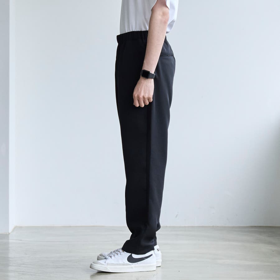 すっきりとしたきれい見えするテーパードシルエットのイージーパンツです。