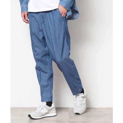 麻混のデニムを使用したテーパードパンツ。