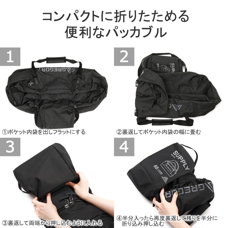 耐久撥水コーティングを施した、信頼性と耐久性の高いダッフルバッグ。汎用性の高いサイズ感で、65L容量の「サプライ65」は、5~6泊程度の旅行に最適。申し分ない収納力にスムーズな開閉、コンパクトに折りたたんで持ち歩けるパッカブルデザインがポイントです。さらに、背負いも可能なパッド入りのショルダーストラップも装備。ストラップを使用しない時は収納しておける便利な設計のため、シーンを問わず活躍してくれること間違いなしです。