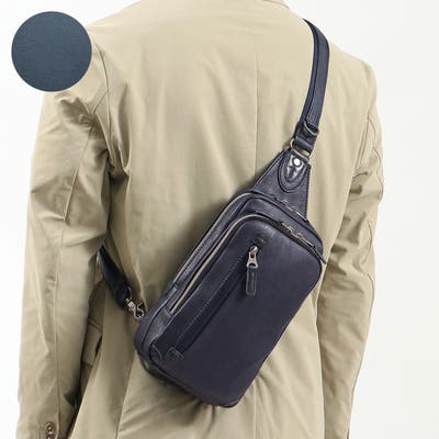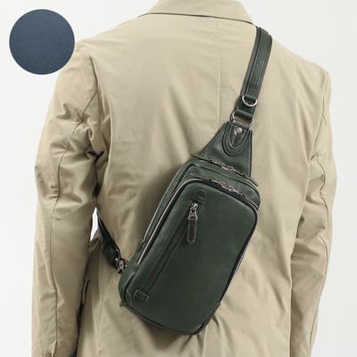 やわらかなフェイクレザーを使用した縦型ボディバッグ。負担のかかりやすい部分には牛革を使用し、強度を持たせています。カジュアルな中にも品があり、大人のオフスタイルにマッチするデザインが魅力的です。メインルームは必要最低限の貴重品と小物を収めるのに丁度良いサイズ感で、ちょっとしたお出かけや旅行のサブバッグなどに活躍します。縦長のフォルムを活かして長財布も収納可能。間口はU字に大きく開き、底の方に収納したアイテムも楽々取り出せます。フロントにはマチを設けた収納力のあるポケットを配置。メインルームとは分けたいアイテムの収納に便利です。また、メインルーム内にはクッション性に優れたポケットを設けているので、スマートフォンやポータブル充電器などのデバイス類も安心して持ち運びできます。本体下部の両サイドに接続金具を設けることで、ショルダーストラップを左右どちらの肩でも背負うことができ、利き手を選ばない機能的な設計となっています。