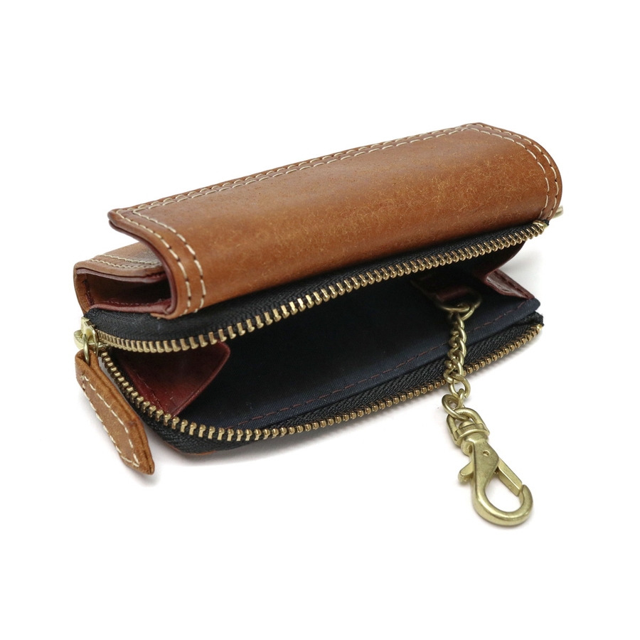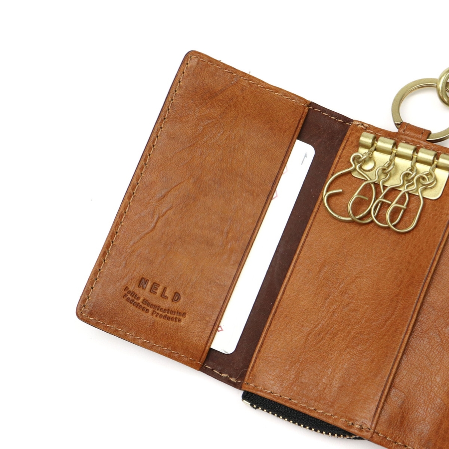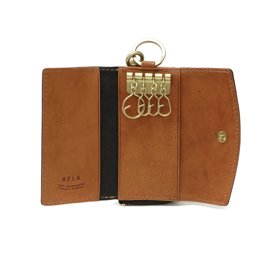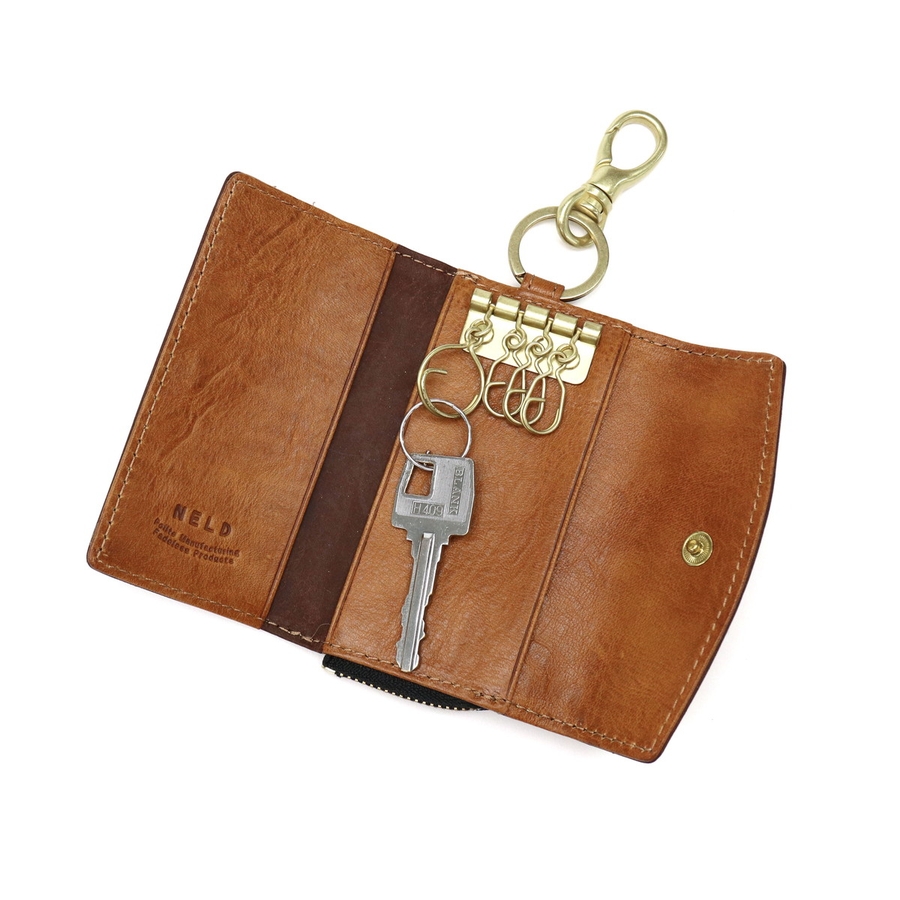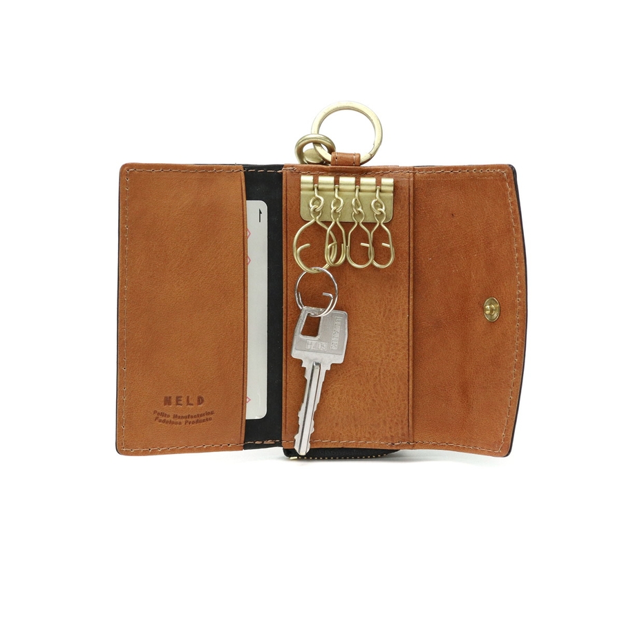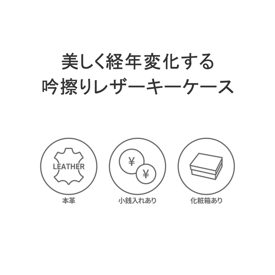 イタリアの名門タンナーが鞣しているプエブロレザーを使用した『PUEBURO』のキーケース。時間と手間を有する「バケッタ製法」と、手作業での丁寧なやすり掛けが生み出す、独特な革の表情・美しい経年変化が特徴です。開いた際に見える内・外で異なる配色が、遊び心を演出しているのも魅力的です。