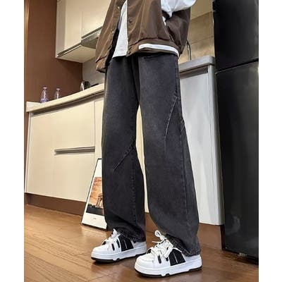 カットアクセント ヴィンテージ風 デニムパンツ