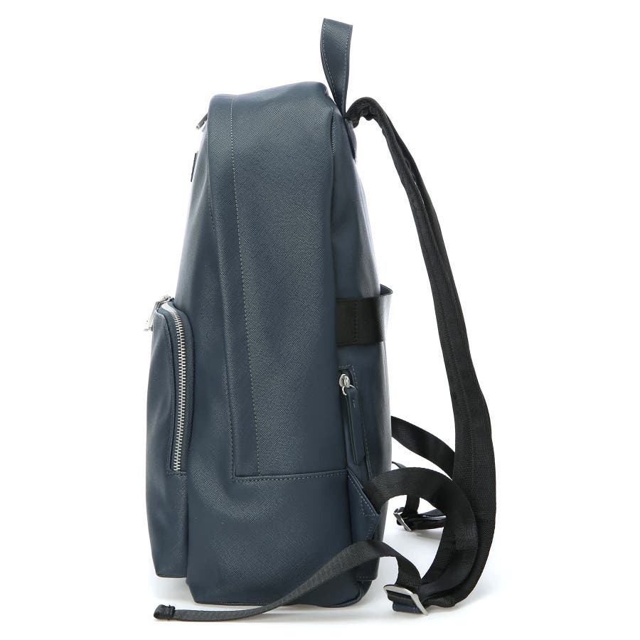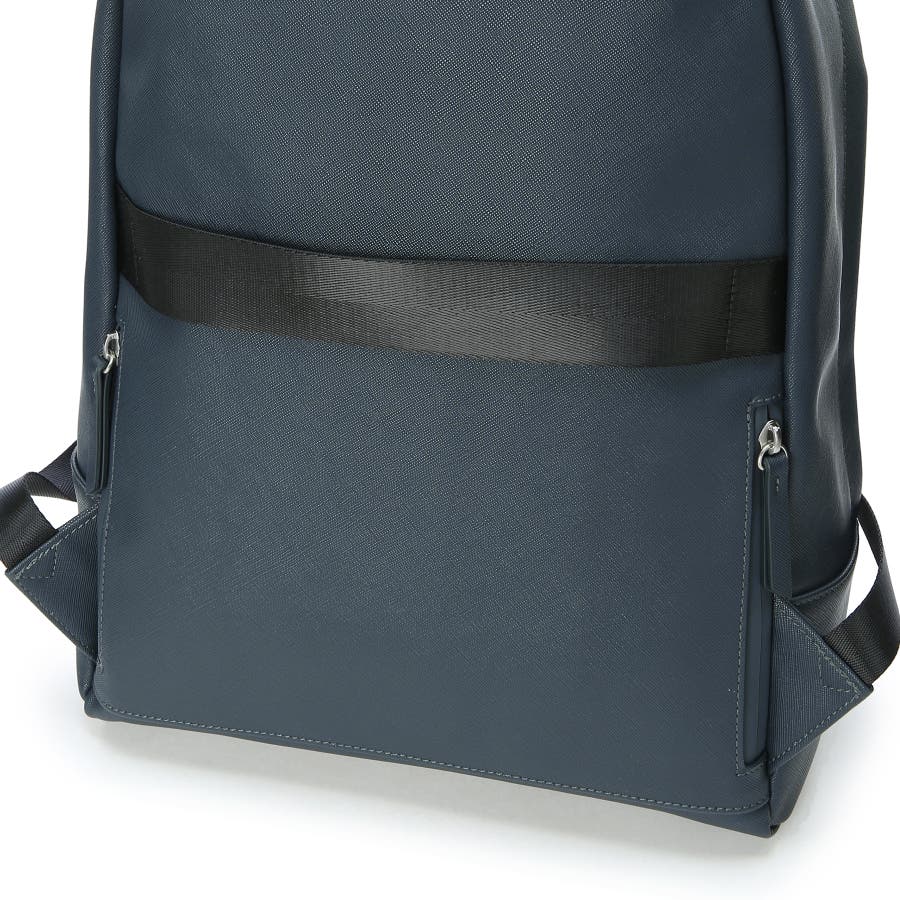サフィアーノエコレザーで仕立てられた上品な風合い漂うバックパック。フロントポケットのほかに、取り出しやすい背面ポケットをあしらっています。内側にはブランドロゴの総柄プリントが施されているのも魅力。シンプルなデザインなので、通勤通学にもお使いいただけます。 外側ファスナーポケット:3 内側オープンポケット:1 内側ファスナーポケット:1 A4サイズ収納可能