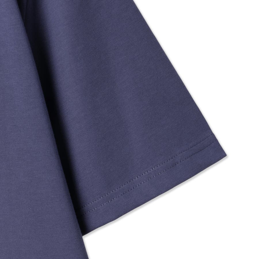 デニム風のグラデーションカラーとエンボス加工がユニークなTシャツ。定番のトライアングルロゴも個性を放つデザインに仕上げました。綿ポリ素材のさらりとした着心地の良さで、デイリーユースにも重宝します。カジュアルコーデやストリートスタイルのアクセントにもおすすめです。
