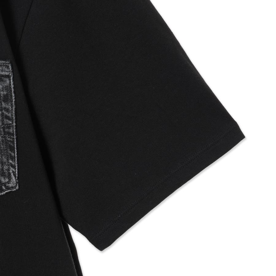 胸元のデニム風ポケットがアクセントとなり、シンプルな中にもさりげない個性をプラスします。