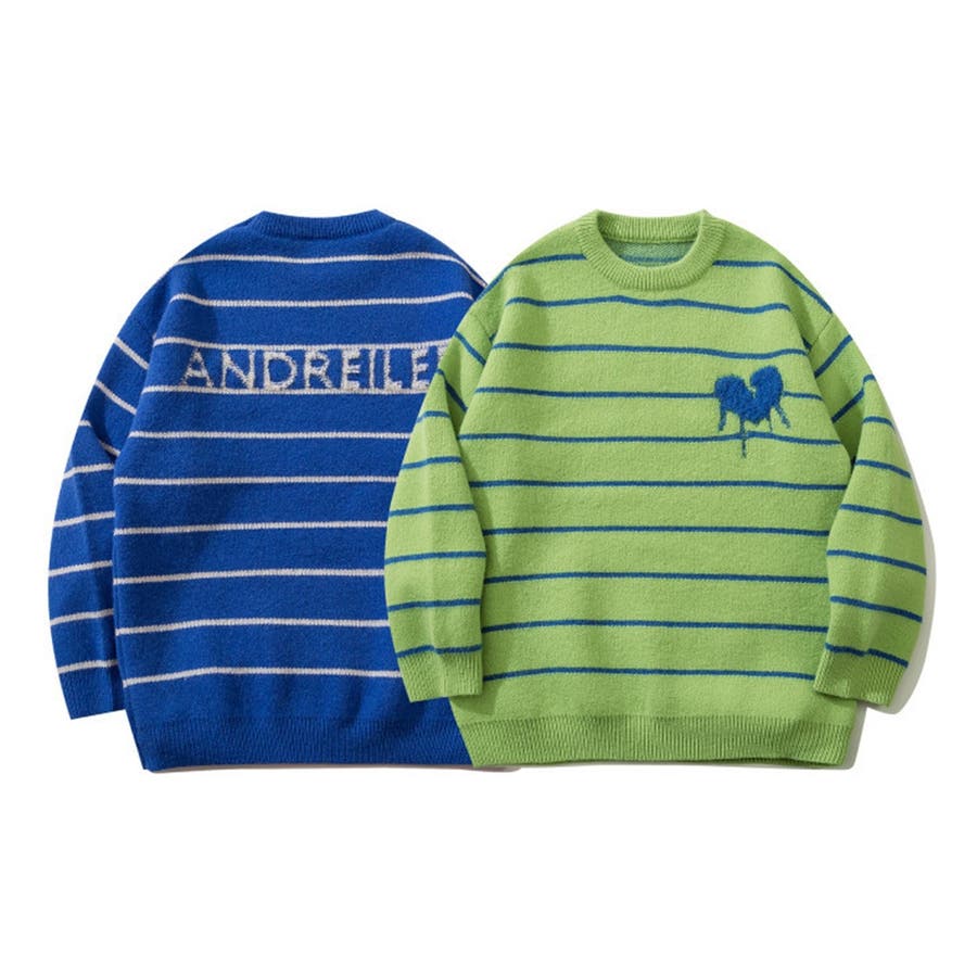 ニット【HOOK】「溶けたハート」刺繍ボーダーニットセーター ストリート系 ロン…