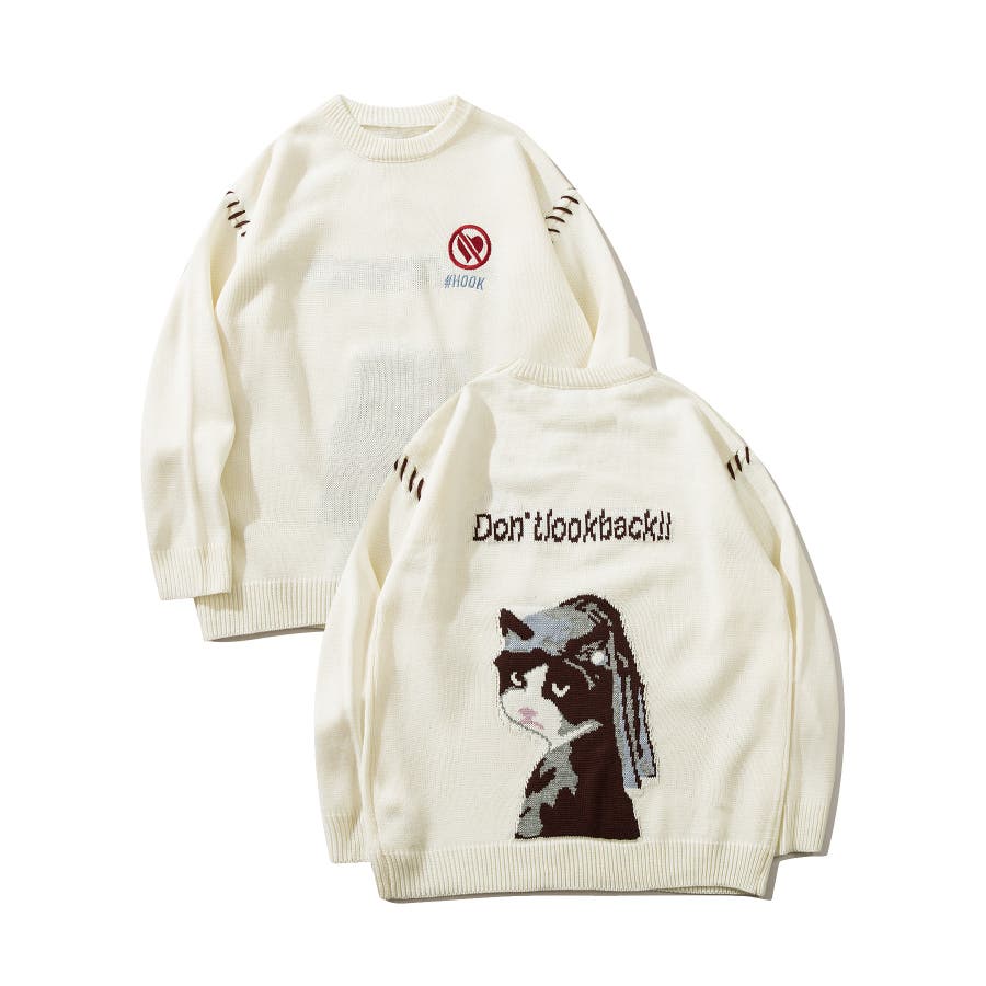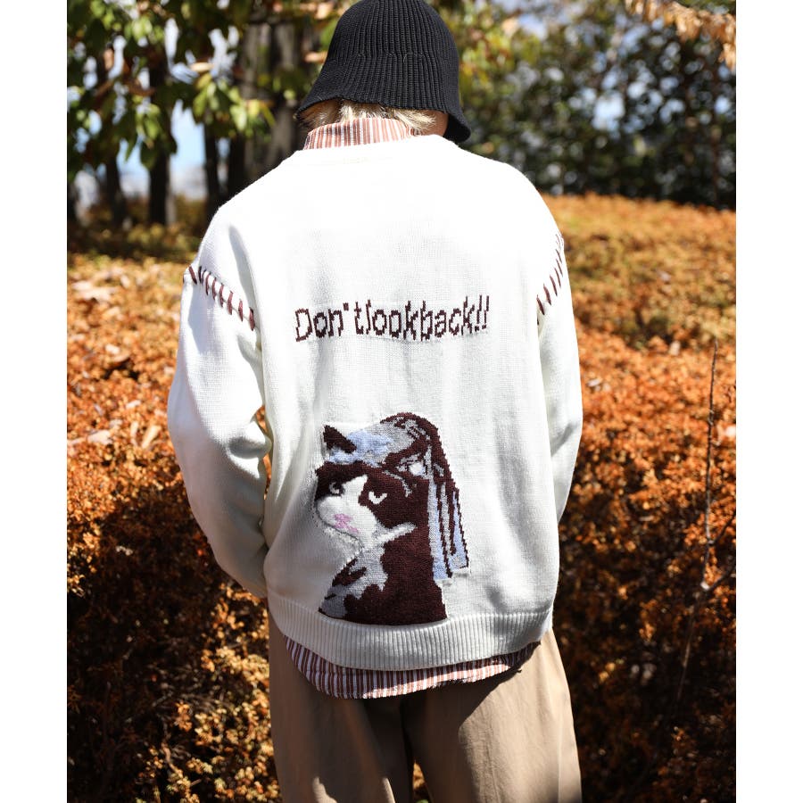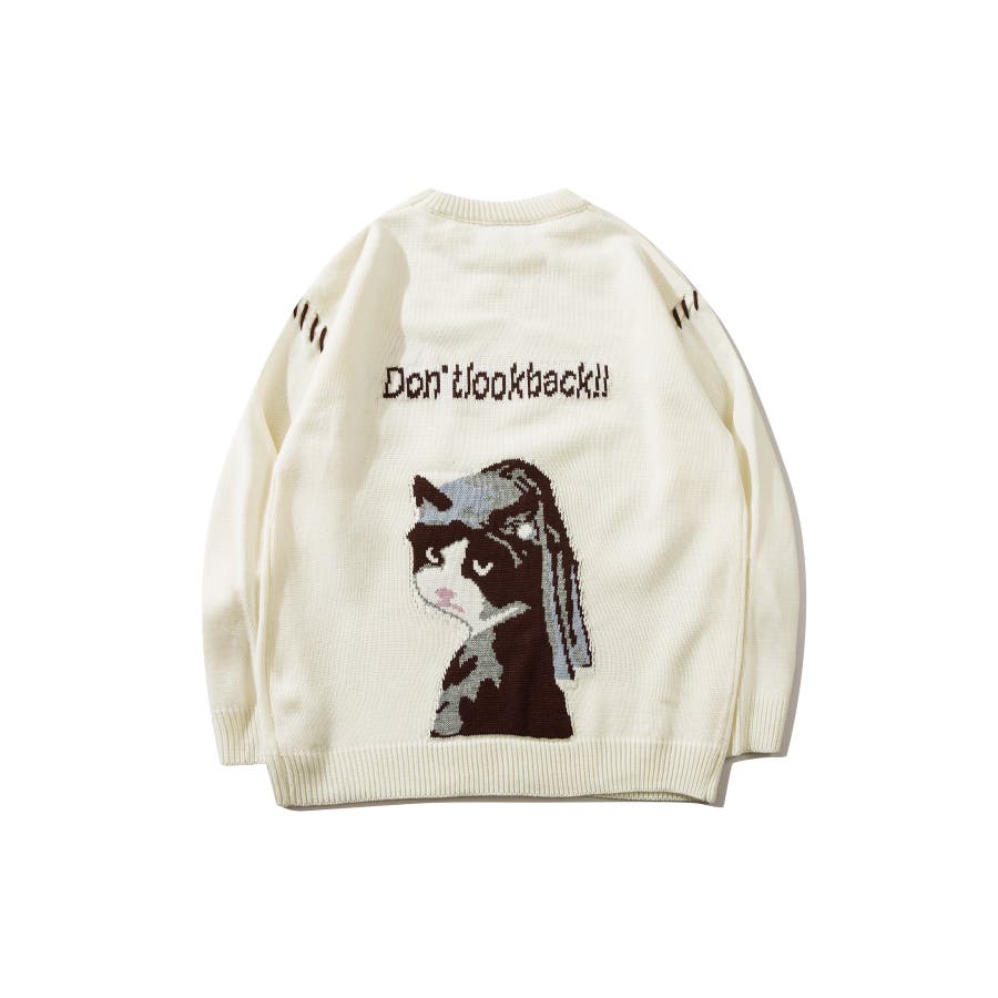 フェルメール作「真珠の耳飾りの少女」をニャンコバージョンにしたニットセーターが登場上質のアクリルを使用し、チクチクしない肌触りの良いニットセーターに仕上がっています身幅や袖にゆとりを持たせることで、丸みのあるシルエットを表現しつつも、インナーとしても合わせ易いよう計算された、程好くリラックス感のある絶妙なシルエットが魅力程よい厚みとさらりと優しい着心地なので秋から冬、春先までのロングシーズンお使いいただけます男女問わずユニセックスで着用頂けるので、ご自身用は勿論、プレゼントとしても喜んでいただけるおすすめのアイテムです。