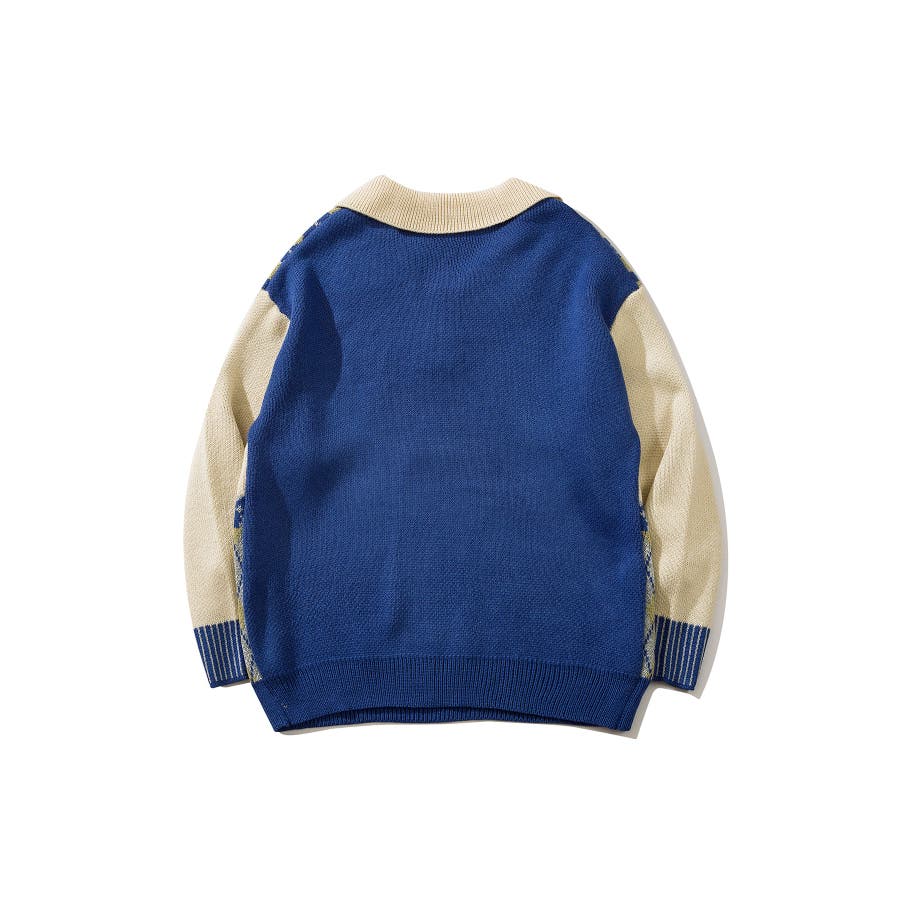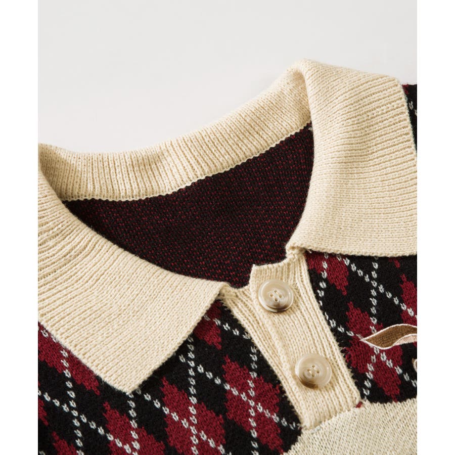古着風レトロ調うさぎ刺繍配色アーガイル柄ポロ襟ニット【AW】
