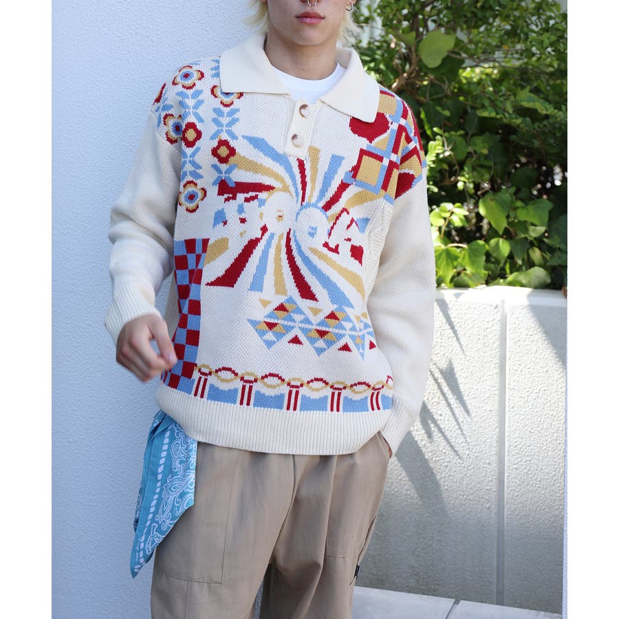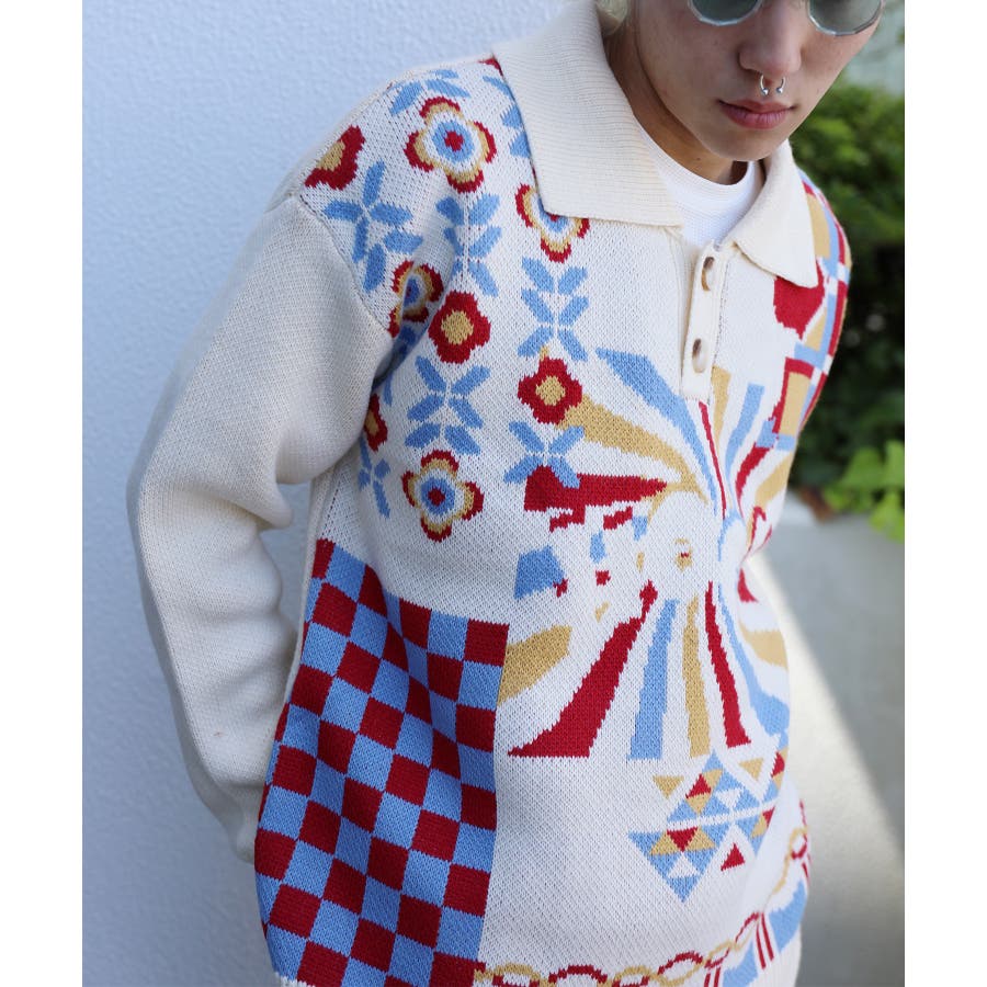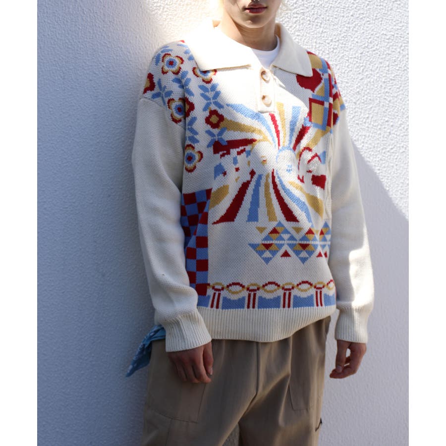 立体感のある編地といろんなパターンを組み合わせることで表情のある仕上がりにしました定番パッチワーク模様ニット身幅や袖にゆとりを持たせることで、丸みのあるシルエットを表現しつつも、インナーとしても合わせ易いよう計算された、程好くリラックス感のある絶妙なシルエットが魅力程よい厚みとさらりと優しい着心地なので秋から冬、春先までのロングシーズンお使いいただけます男女問わずユニセックスで着用頂けるので、ご自身用は勿論、プレゼントとしても喜んでいただけるおすすめのアイテムです。